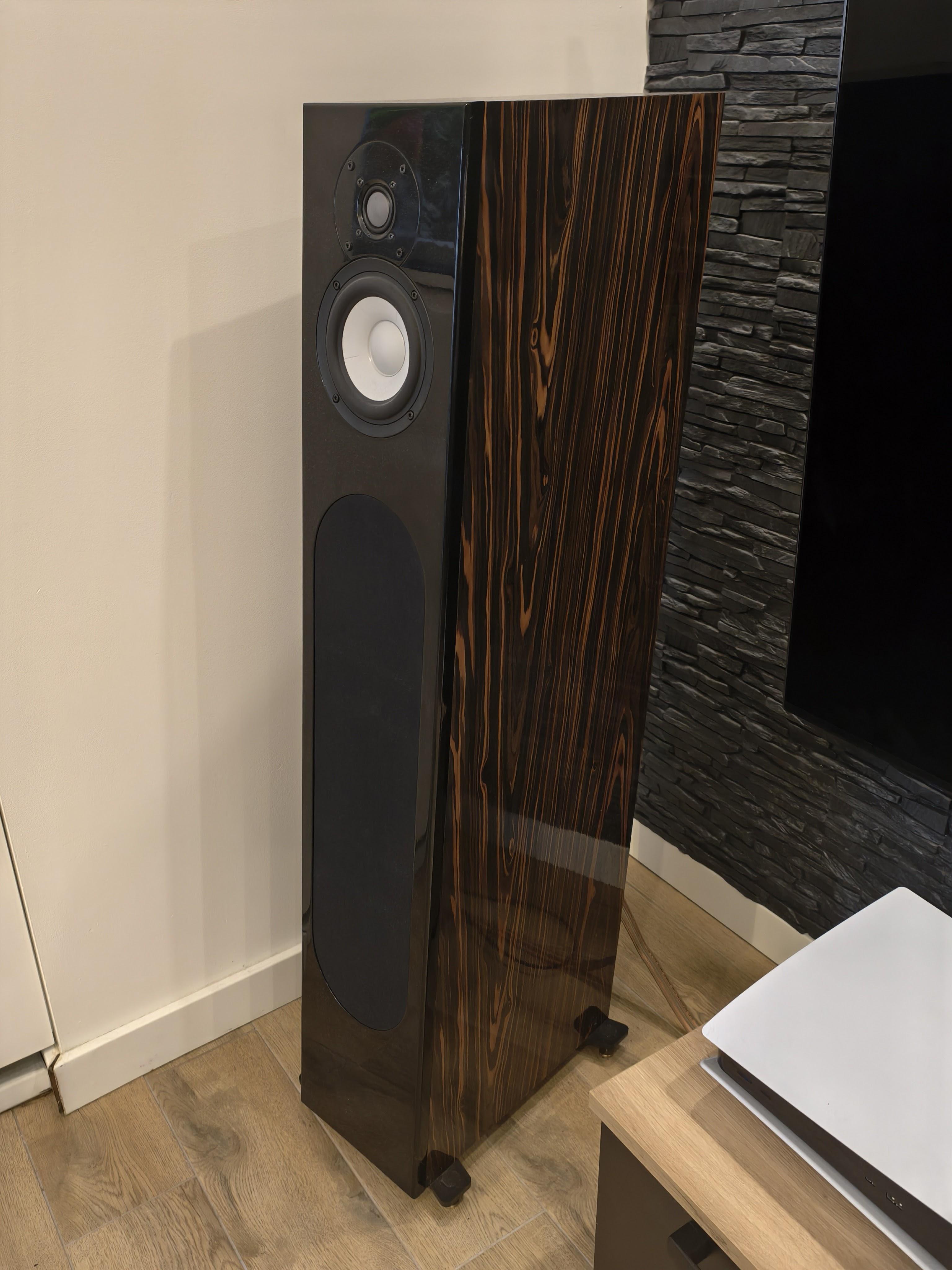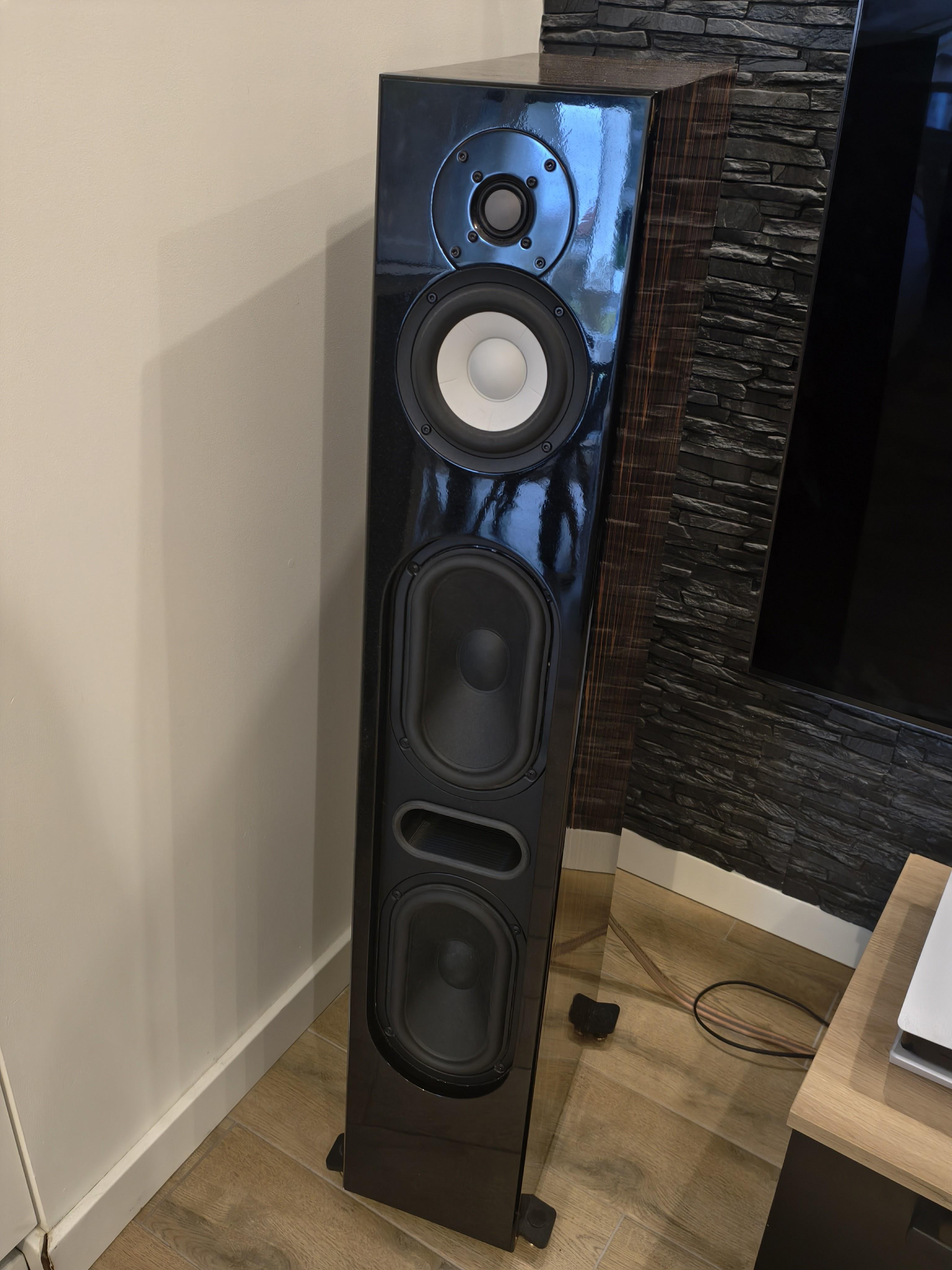 Diapason Karis III. Miałem je kiedyś przez kilka dni. Pięknie wykonane skrzyneczki. Gorzej z przetwornikami. Moja para miała problem z odklejającą się masą/klejem dookoła korektora fazy w głośnikach nisko-średniotonowych. Wyglądało to dość groźnie i kiepsko rokowało na przyszłość. Choć może to pojedynczy przypadek i akurat tak mi się trafiło. Samo brzmienie bardzo ciekawe, przestrzenne, z namacalnym, dociążonym, dość nisko zawieszonym wokalem. Największy nacisk kładły na niski środek, powiększały źródła. Całościowo ocieplone, raczej łagodne z charakteru na wysokich. Wyższa średnica stonowana, bez natarczywości. -