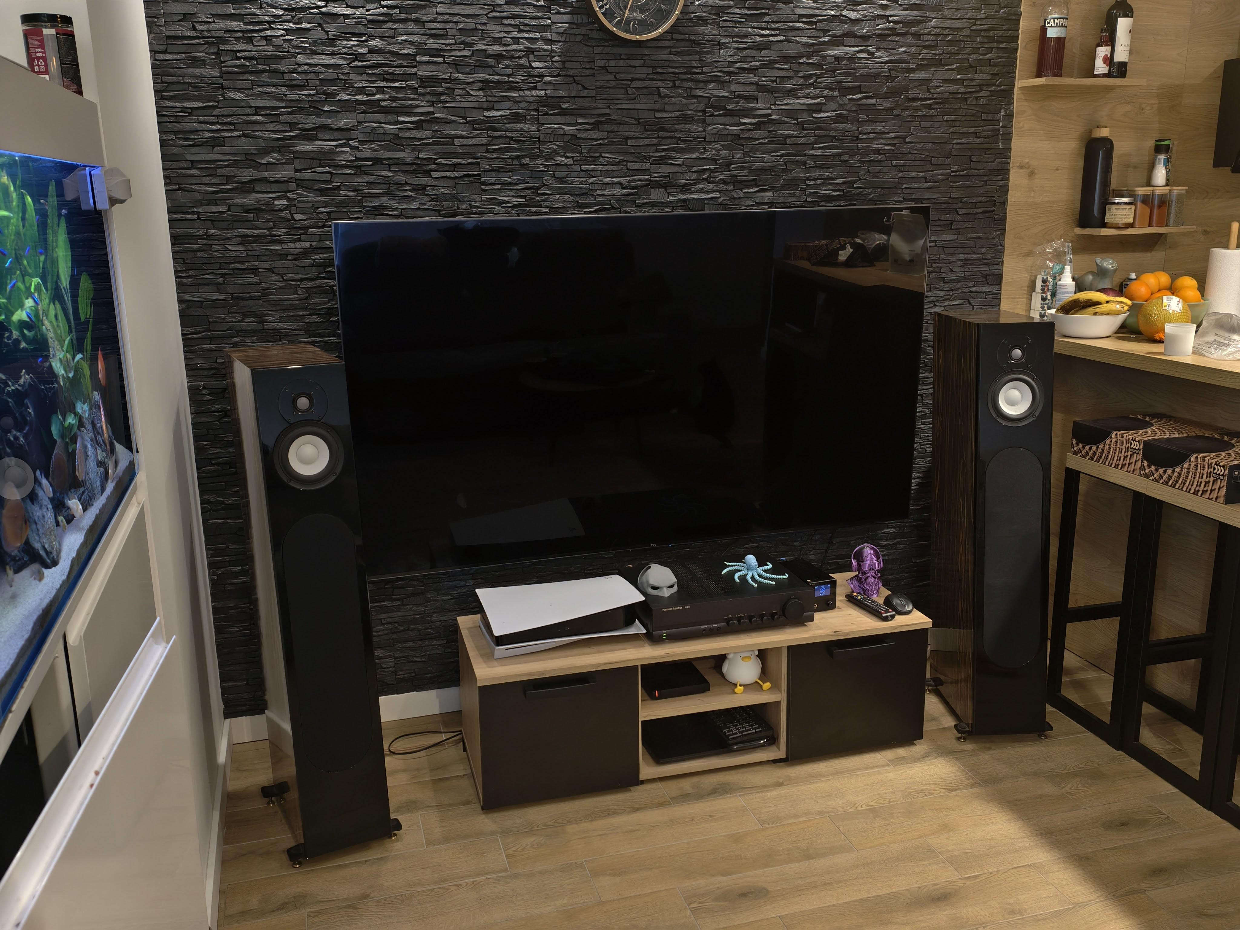 Diapason Karis III. Miałem je kiedyś przez kilka dni. Pięknie wykonane skrzyneczki. Gorzej z przetwornikami. Moja para miała problem z odklejającą się masą/klejem dookoła korektora fazy w głośnikach nisko-średniotonowych. Wyglądało to dość groźnie i kiepsko rokowało na przyszłość. Choć może to pojedynczy przypadek i akurat tak mi się trafiło. Samo brzmienie bardzo ciekawe, przestrzenne, z namacalnym, dociążonym, dość nisko zawieszonym wokalem. Największy nacisk kładły na niski środek, powiększały źródła. Całościowo ocieplone, raczej łagodne z charakteru na wysokich. Wyższa średnica stonowana, bez natarczywości.