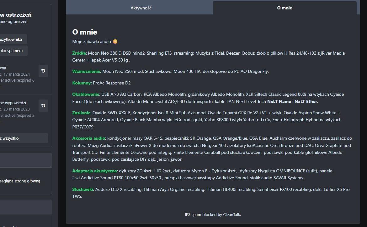 4. @Redakcja AUDIO na 100% przyjrzała się zagadnieniu i widocznie nic nie można poradzić. Ja widzę twoje "o mnie", ale jest tam też info "IPS spam". Może silnik forum ma takie zabezpieczenia prewencyjne, a informatycy zajmujący się tematem nie odkręcają tego "zaworka" by coś się nie posypało. Nie jest tak że jedni są lepsi od drugich i proszę nie konfabuluj na temat. Prawda jest taka, że to właśnie Ty czasami masz większe fory i atencję niż inni Pozdrawiam. M