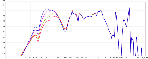 • Jarku, to już dyskusję podciągnij z źródłami powyżej. Natomiast uważam, że już z naszego poziomu jest to po prostu łatwo sprawdzić.  DSP, Dirac, RoomPerfect, Anthem Room Correction, cokolwiek co da Ci możliwość dokonania kalibracji oraz sprawdzenia krzywej przy różnym poziomie głośności. YPAO czy Audyssey odpadają.    Tutaj masz z innego forum przeklejone: The below graphic indicates just how much SPL is lost (compression) or gained (enhancement; usually due to distortion) when the speaker is played at higher output volumes instantly via a 2.7 second logarithmic sine sweep referenced to 76dB at 1 meter. The signals are played consecutively without any additional stimulus applied. Then normalized against the 76dB result. The tests are conducted in this fashion:   76dB at 1 meter (baseline; black) 86dB at 1 meter (red) 96dB at 1 meter (blue) 102dB at 1 meter (purple) The purpose of this test is to illustrate how much (if at all) the output changes as a speaker’s components temperature increases (i.e., voice coils, crossover components) instantaneously.       oraz to samo także na słuchawkach   Some headphones are bothered by this as well. A fine example is the SONY MDR-7509HD. See plot below. 70dB, 80dB, 90dB and 97dB traces overlaid.     Mam nadzieje, że pomogłem.