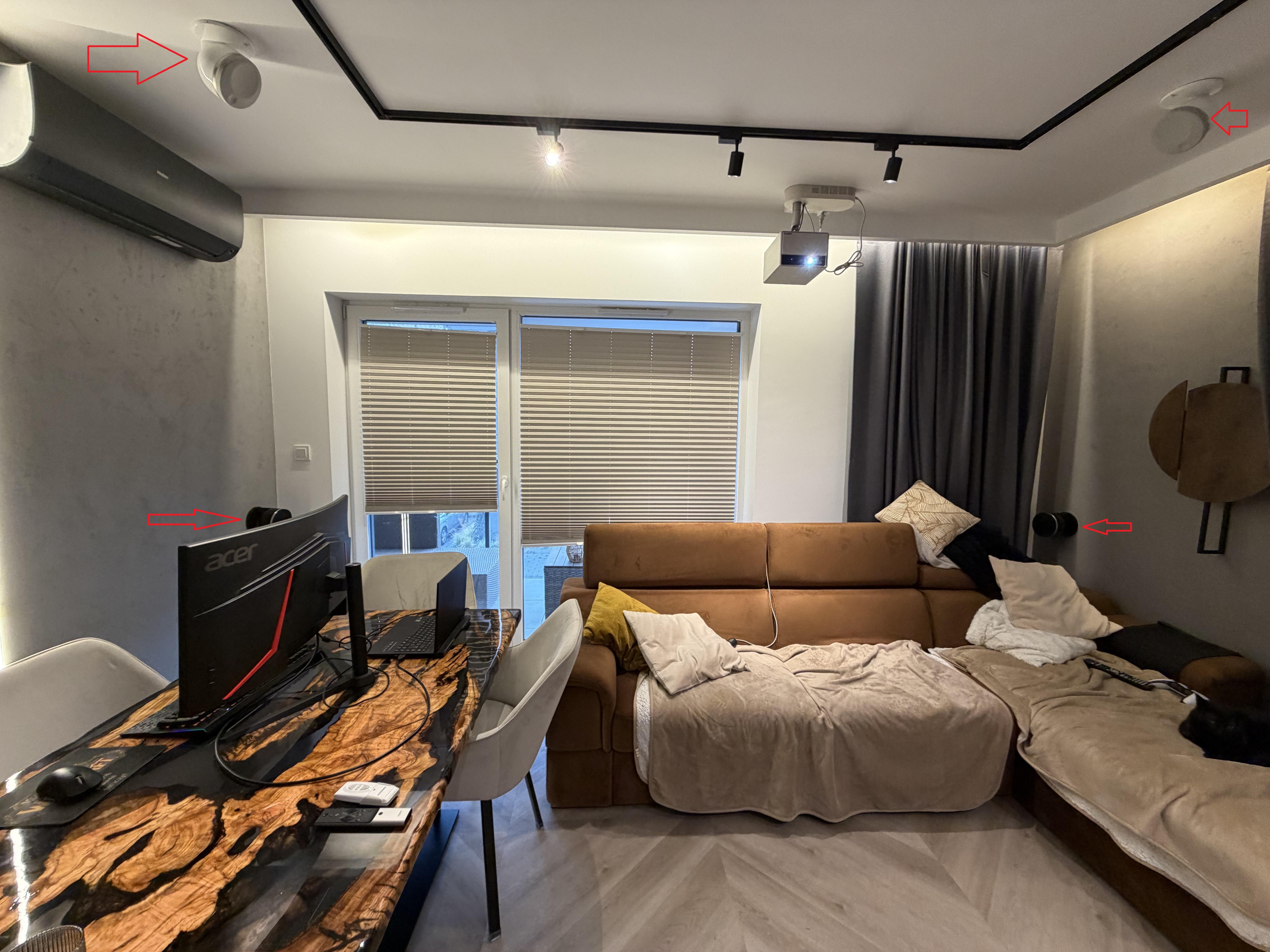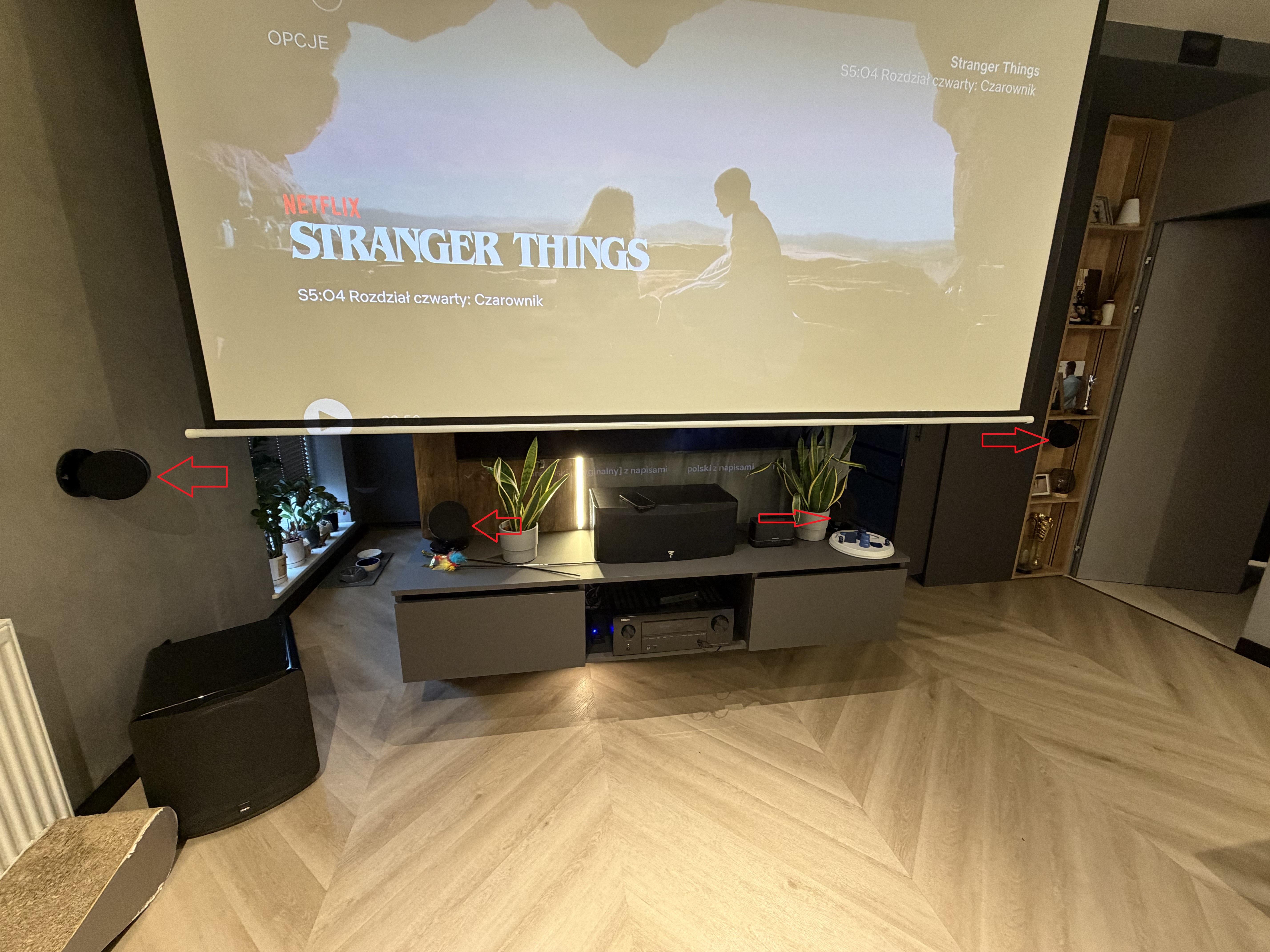 A więć tak to wygląda, co do kątów, to zrobiłem wcześniej rozeznanie i przewody już miałem naszykowane, umiejscowienie i ustawienie kątów należało do Pana od Kalibracji(z tego co pamiętam to finalnie było w miarę ok z kątami). Powiedźcie prosze czy opłaca się w moim wypadku wymienić te 2 sateliki na szafce tv na 2xFocal Aria Evo X N°1, niestety na te wysokie kolumnowe Focal Aria Evo X No3 niestety nie mam na teraz budżetu oraz miejsca. Jestem bardzo otwarty na Wasze sugestie. Pozdrawiam