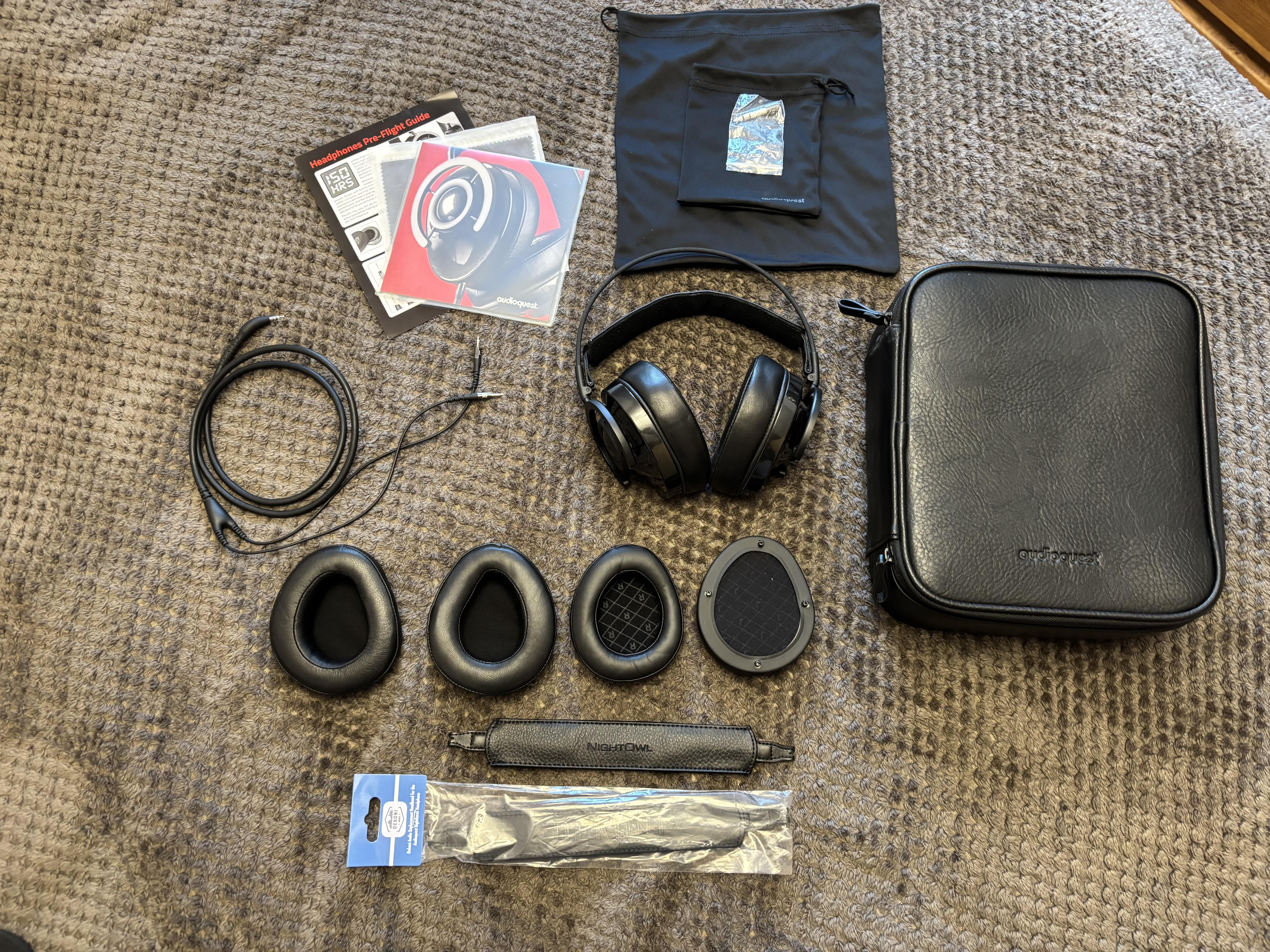 Przedmiotem ogłoszenia sa słuchawki AudioQuest NightOwl w stanie jak nowym (bez najmniejszych oznak używania). Jestem przekonany, że wystawiony przeze mnie egzemplarz jest najlepiej zachowanym egzemplarzem w Polsce - same sluchawki nie maja najmniejszych oznak użycia (muszle, pałąk). Pady zostały wymienione na nowe skórzane (nie ekoskóra) - dodatkowo dołączam oryginalne skórzane nowe oraz trzeci komplet zamienników ze skóry owczej. Headband oryginalny posiada delikatne slady kruszenia materialu lecz dolączam w tej cenie zapasowy, nowy - oryginalny AudioQuesta oraz trzeci nowy zamiennik DAKONI. W zestawie wszystko co daje kryginalnie producent: - nowa nieuzywana przejsciowka Audioquest - papierologia - oryginalny pokrowiec w stanie idealnym - dwie oryginalne saszetki - jak wyzej dwa komplety zapasowych, nowych padow skorzanych - dwa komplety nowych, zapasowych opasek na glowe Najbardziej preferuje odbior osobisty w Lublinie badz okolicach. Ewentualna wysylka po ustaleniu z kupujacym. Cena za komplet -2000 zł. Moge zejść oczywiście z ceny za same słuchawki bez zapasowych akcesoriów