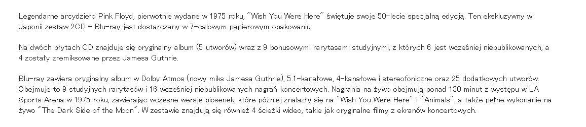 Wracając do "Wish You Were Here" płyty rocznicowej która zamówiłem jakiś czas temu a teraz pomyślałem że sprawdzę jaki ma status. jest też opis którego wcześniej nie było ... wygląda to interesująco.