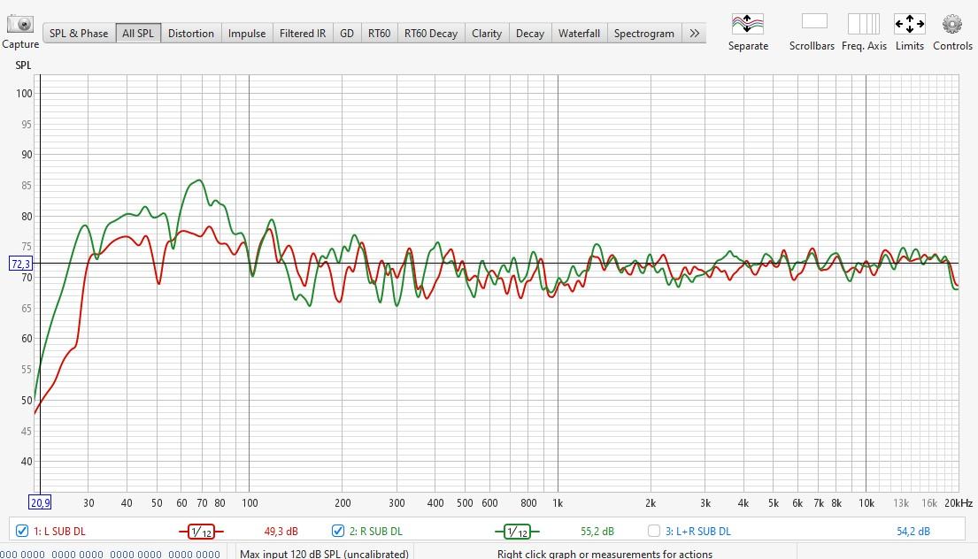 Zanim zgłębimy problematykę dyspersji i takich tam , to proponuje wrócić do korzeni. Zwracam się do właścicieli subwooferów. Zmierzyliście może Panowie jak to u Was jest poziomem głośności lewego i prawego kanału ? Dzisiaj robiłem eksperyment i oczywiście zawsze głośniej gra ta strona gdzie stoi sub. Na pomiarze poniżej sub ustawiony z prawej strony. POMIAR VOLUME.mdat