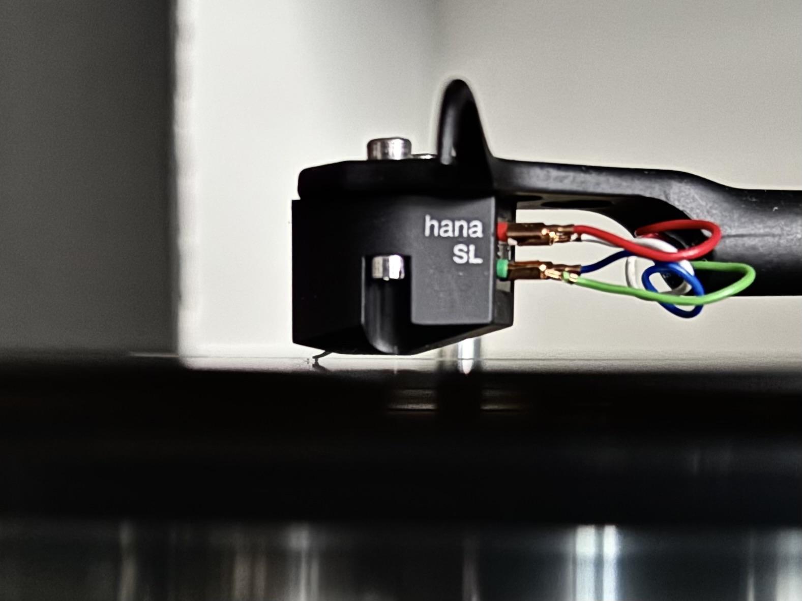 Wkładka Hana SL używana ok. 400-450 godzin, stan bez zastrzeżeń, gra pięknie, bez ekspozycji trzasków czy szumu przesuwu. Powód sprzedaży to chęć wskoczenia na wyższy poziom Co do zużycia igły - według informacji dostępnych w internecie wkładki z igłą o szlifie Shibata wytrzymuje co najmniej 2000 godzin grania, więc sprzedawana Hanka posłuży jeszcze dłuuugo. Wkładka wisi na ramieniu RB880 i przy odbiorze osobistym można jej posłuchać, do czego namawiam. 950 + KW Specyfikacja techniczna Hana SL: Szlif igły: Nude Diamond Shibata Wspornik: Aluminium Napięcie wyjściowe: 0,5mV / 1kHz Niezrównoważenie kanałów: < 1,5db/1khz Nacisk igły: 2g Śledzenie ścieżki: 70 μm/2g Separacja między kanałami: 28 dB/1kHz Pasmo przenoszenia: 15-32000Hz Impedancja: 30 Ohm/1kHz Sugerowana impedancja obciążenia: >400 ohm (u mnie gra znakomicie na 100 ohm) Masa wkładki: 5g