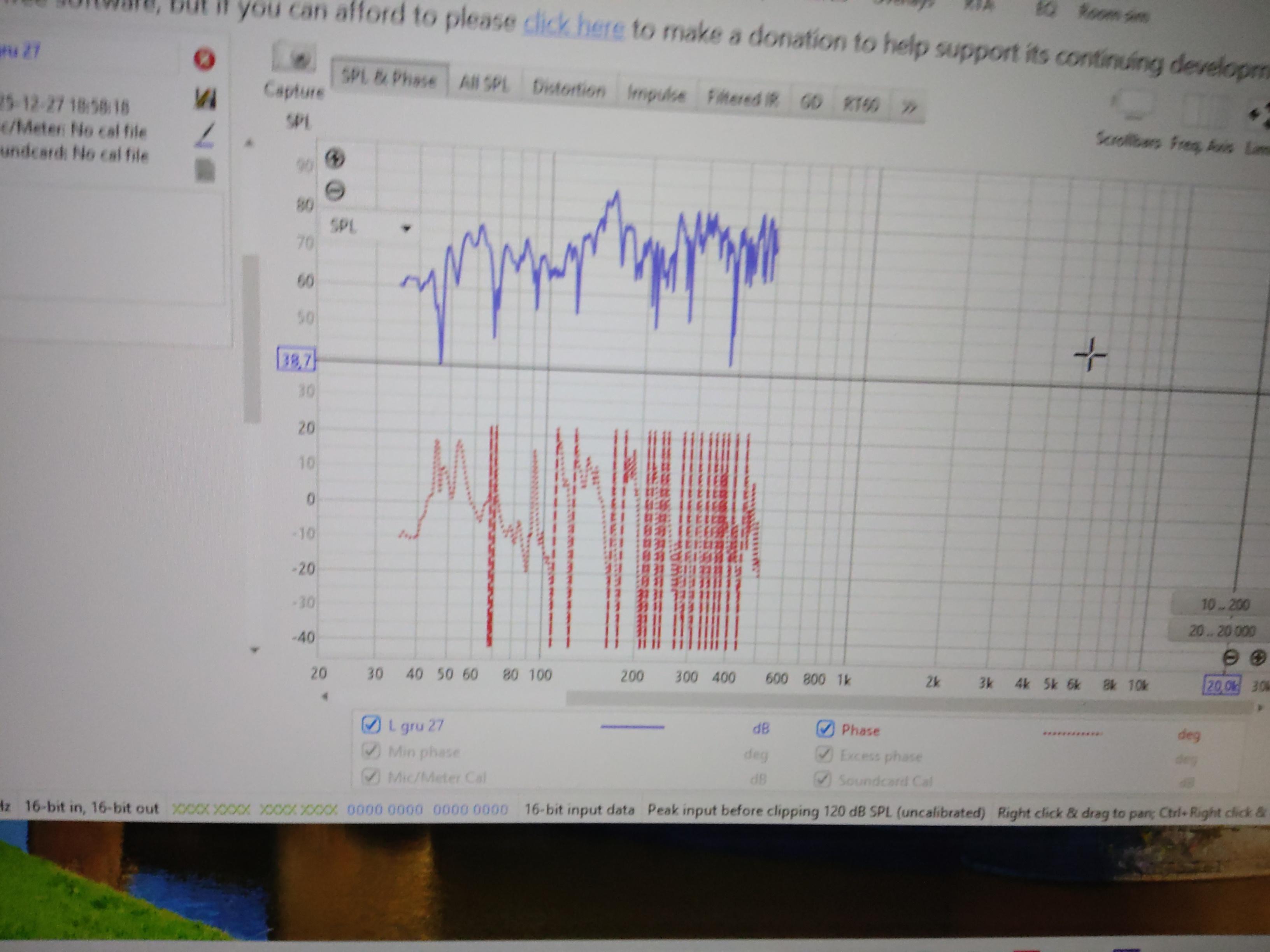 Cześć. To mój pierwszy głośnik DIY,który według założenia miał grać w przedziale około 50-60 Hz(niżej sub) do około 300hz. Jest w obudowie OZ wymiary szer.44 wys 40 gł.55.(około 70 litrów)chociaż zalecana obudowa to BR ale wyczytałem że ma wysoki qts 0,50 co w zasadzie wystarcza również do oz (chciałem mieć szybszy i lepiej kontrolowany bass). Puki co jest lipa bo jak podglosnie to się robi karton,nie wiem czy wiercić dziurę na br czy coś jednak innego wykombinować,środek wytłumiony pianka akustyczna 3cm,wszystkie ścianki do tego luźna fizelina na około 1/3 obudowy. Do strojenia używam minidsp 2x4 hd,chociaż na razie tylko go odciąłem na 60hz-300hz bez żadnego Eq i innych rzeczy. Zapomniałem napisać że mam 2 takie głośniki na prawy i lewy kanal Pomiar rew z lewego głośnika z miejsca odsłuchowego.
