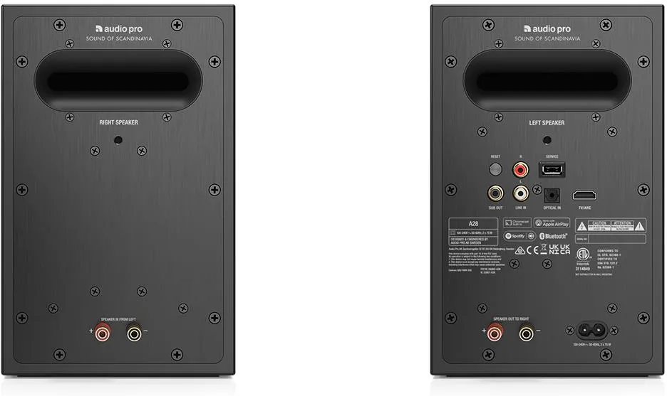 AudioPro ma możliwość podłączenia subwoofera, jest z tyłu sub out. Jest również bass-reflex w formie prostokątu - ale to akurat nie jest jakiś istotny element. -