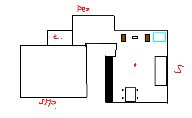 Witam, szukam pomocy w ustawieniu kolumn w pokoju, nie powiem dokładnie ile m2 jest w salonie gdzie sie znajdują ale zgaduje, że około 16m2, na obrazku załączonym po lewej stronie w dolnym rogu rysuku znajduje sie sypialnia obok łazienka ( opisze je skrótami niżej ) zestaw to denon dra 800h z kolumnami heco aurora bez suba, a niebieski prostokąt to jest biurko po prawej kanapa a czarny prostokąt to blat kuchenny ( salon z aneksem ) jak i stół z krzesłami, mam taki problem, ponieważ nie jestem w stanie ułożyć kolumn tak aby gdzieś mniej więcej tam gdzie jest czerwona kropka był sluchalny bas. Bas czuć i słychać najbardziej w rogu pomieszczenia po prawej dolnej stronie jak i przy blacie. Czytałem o pułapkach bassowych, które mogły by pomóc. Jestem totalnym laikiem w audio. Wcześniej używałem komputerowych głośników edifier s730, które znajdowały się na biurku a subwoofer pod biurkiem. Czy macie jakieś pomysły jak ułożyć kolumny aby jednak gdzieś w tym środku pokoju był ten bas słyszany? Ł - łazienka Prz - przedpokój Syp - sypialnia S - Salon z aneksem