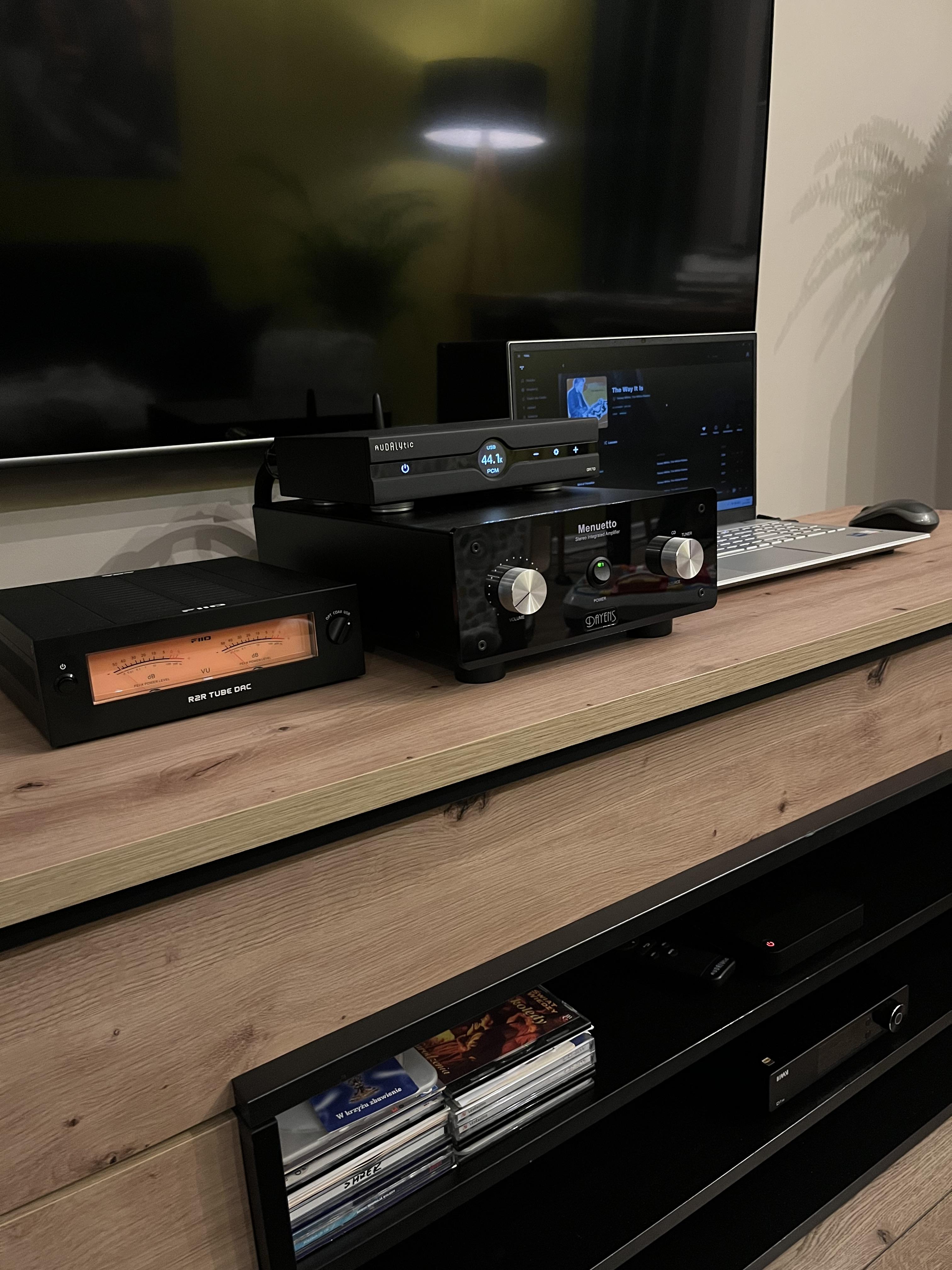 Jak w tytule, rozglądam się za zestawem stereo. Zależy mi na: 1. muzyka - żródła: CD, streaming, radio (może być internetowe), w przyszłości może rozbudowa o gramofon. Słuchanie głównie ciche, wieczorne. Gatunki: jazz, classic rock, prog rock, blues, czasem klasyka. 2. film - drugorzędna sprawa, podłączenie pod stereo, wygodnie byłoby przez HDMI ARC, żadnych fajerwerków 3. poziom oczekiwań - żadne audiofilskie, póki co spotify leci na głośnikach tv więc gorzej nie będzie, ale jak wydawać hajs to tak żeby to miało sens i poczuć różnicę 4. akustyka - główne wyzwanie, część czysto salonowa-odsłuchowa to 20m2, ale otwarta na kuchnię, schody i przedpokój - cała przestrzeń to 45m2 w dwupoziomowym mieszkaniu 5. budżet - jak najmniejszy ale taki żeby poczuć wyrażny upgrade. Idealnie to zmieścić się z całością, czyli wzmak+stream (lub amplituner stereo)+kolumny+cd w 10k Jestem otwarty zarówno na pomysły z amplitunerem stereo, jak i systemem dzielonym (np. z WiiMem jako streamer + HDMI ARC) oraz cyfrową korektą akustyki (YPAO, DIRAC, etc.)