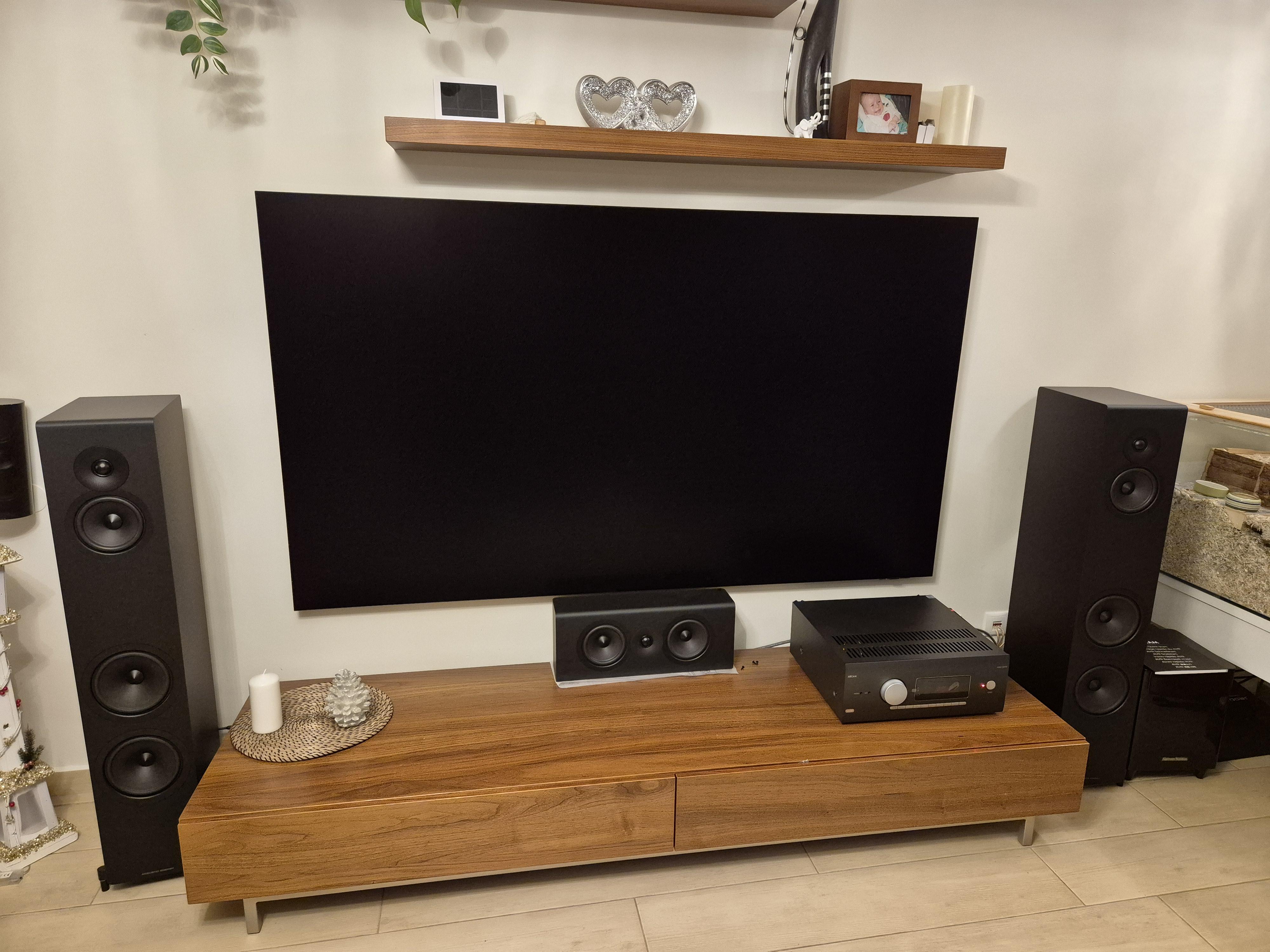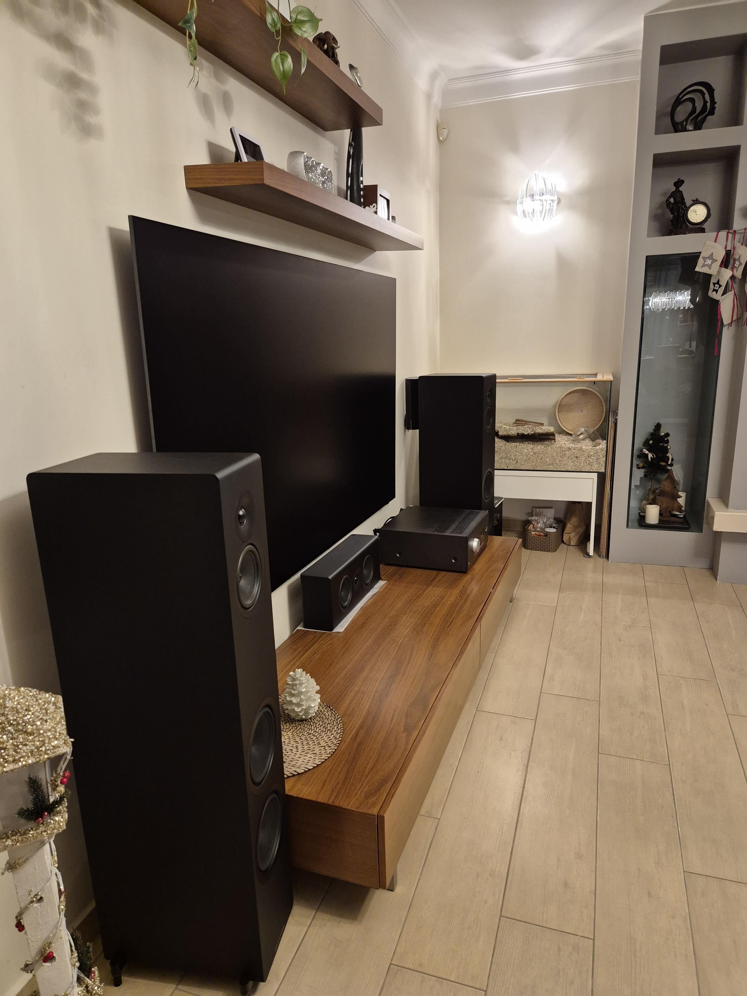 Cześć. Chciałbym podsumować, gdzie jestem. Zdecydowałem się na zakup ampli Arcam AVR21, kolumny Acoustic Energy AE320.2 i centralny AE307.2. Do tego pozostały stare satelity Harman Kardon i chwilowo stary sub HK. Mam ten zestaw u siebie od tygodnia, i to co mogę powiedzieć: - w kinie jest moc i energia - w stereo przy dobrym źródle zestaw wyciąga pięknie szczegóły - bałem się Arcama, ale myślę, że się polubiliśmy Z drugiej strony: - lubię dobry dźwięk, ale pewnie nie potrafię rozróżnić drobnych różnic - obecny zestaw kolumn przytłoczył bardzo salon i szczególnie Żona się z tym źle czuje, a ja nie mam aż takiej presji, aby się upierać przy obecnym wyborze. Chyba głównie przeszkadza to, że tv jest bardzo płaski (grubość 1,2 cm) a kolumny tak daleko odstają od ściany. Dlatego zastanawiam się co zrobić. Chyba chciałbym zostawić Arcama, ale dokonać zmiany kolumn na coś mniejszego. Zacząłem rozważać monitory (choć one też takie małe nie są) albo głośniki on wall. Modele, które wziąłem na tapet to: Focal Aria Evo X N1 Focal On-Wall 302 B&W 705 S3 MA Gold On-Wall MA Gold 100 6G Dali Rubikore On-Wall Pewnie wizualnie najbardziej przeszłyby modele on wall, ale zastanawiam się, jakby się sprawdziły w praktyce. Czy ktoś ma doświadczenie i może się podzielić? -