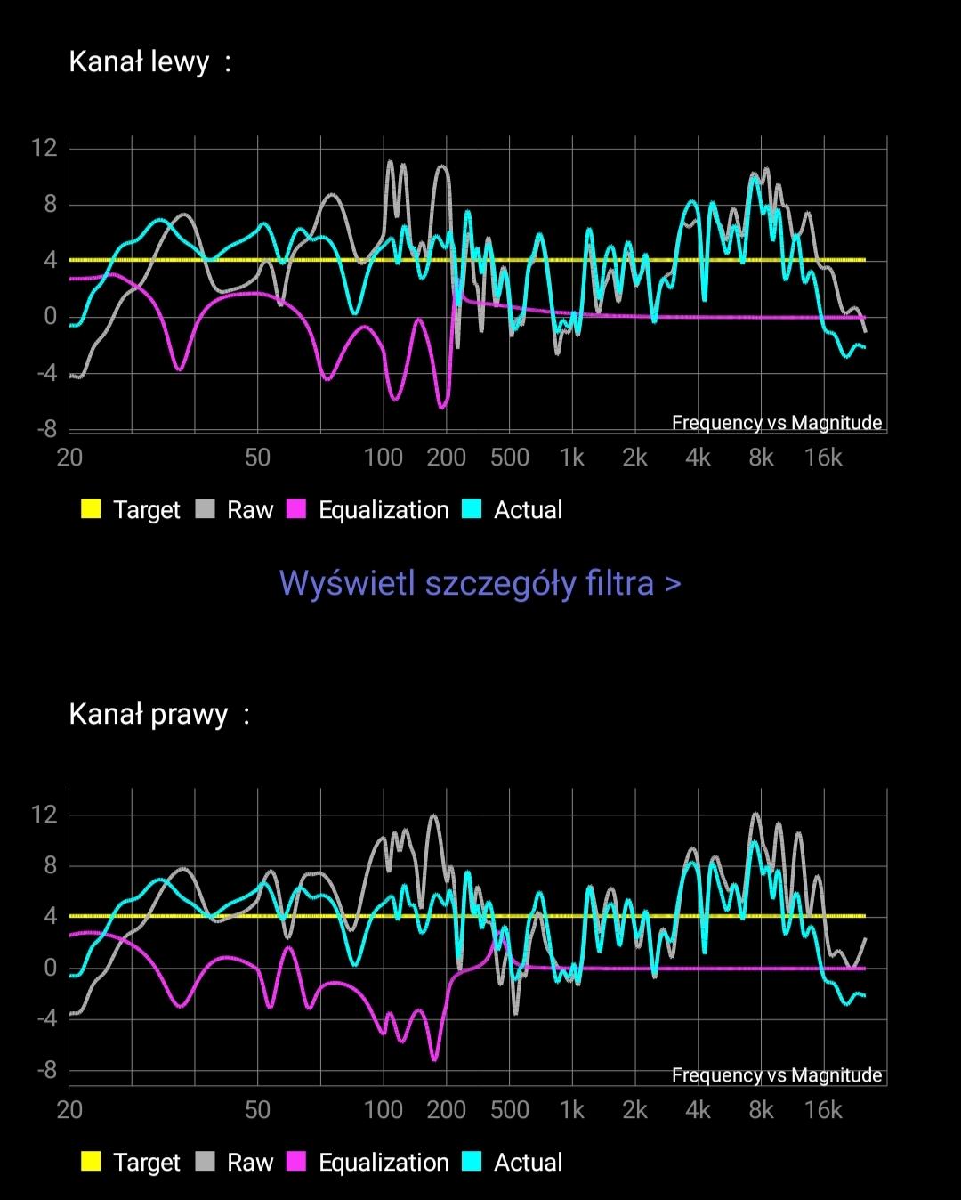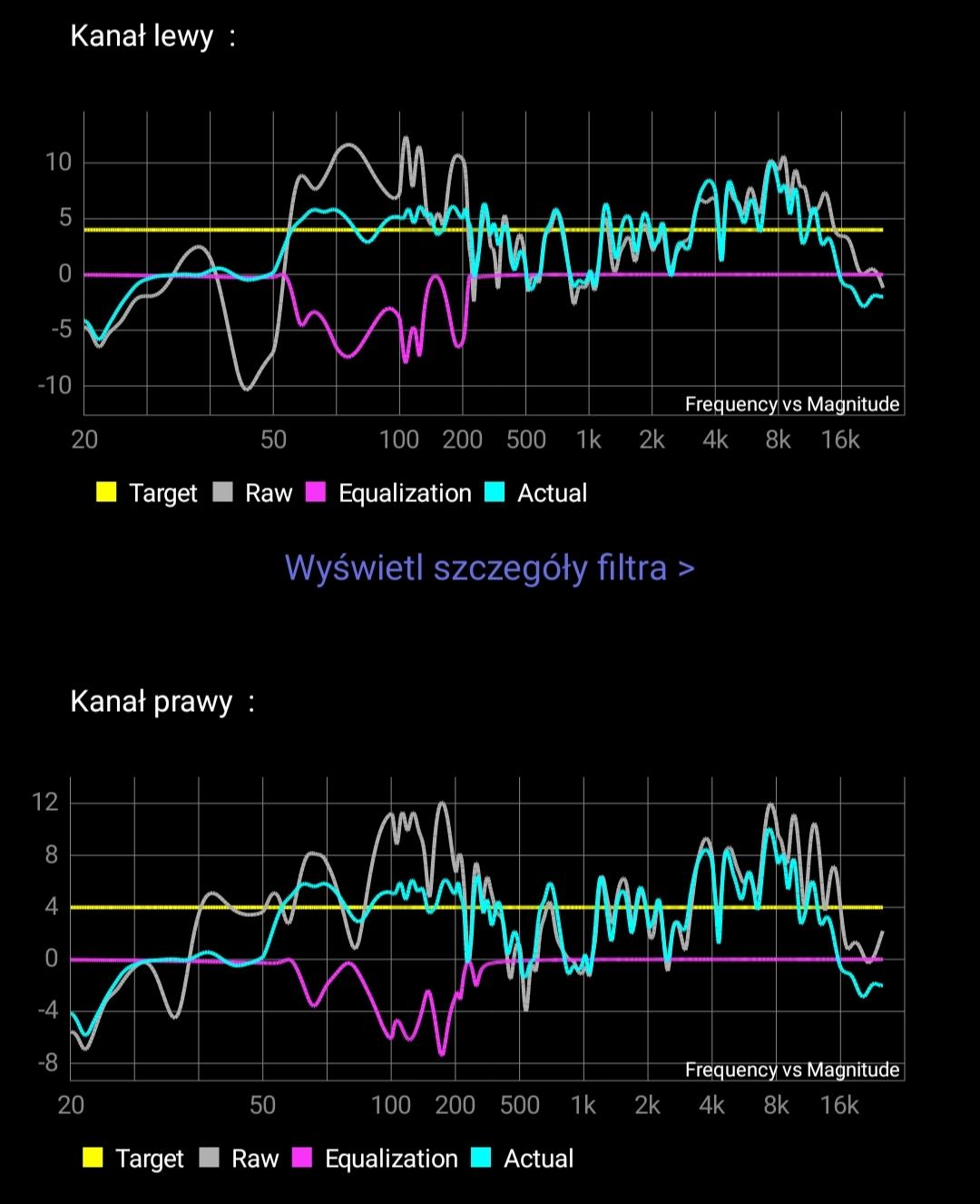 Witam serdecznie szanowne grono bowersiarzy. Jestem tu nowy ale również moje zainteresowanie audio istnieje stosunkowo od niedawna bo dopiero gdzieś od około roku kiedy to postanowiłem zakupić pierwsze "poważne" kolumny tannoy Mercury shadow M3 razem z amplitunerem kina domowego Yamaha rx-a2030. Także proszę o wyrozumiałość. Od niedawna stałem się dumnym posiadaczem 706 S3 i był to dla mnie ogromny przeskok jakościowy, muszę uczciwie przyznać że jestem uzależniony od tych głośników, nie mogę się po prostu od nich oderwać. Czasami słucham muzyki całymi dniami, do tego stopnia że mi nogi drętwieją co nigdy nie się nie zdarzało, żebym tyle czasu w jednym miejscu siedzieł wklejony w fotelu i rozpływał się z przyjemności płynącej ze słuchania muzyki. Zdecydowałem się na nie bo tannoye grały pięknie ale czułem że nie słyszę wszystkiego co powinienem usłyszeć i cieszę się, że zdecydowałem się na ten model. Tyle słowem wstępu. Posiadam wiim ultra który kupiłem bo padł mi moduł dsp we wzmacniaczu więc działają teraz tylko wejścia analogowe w trybie pure direct. Do tego subwoofer stx electrino 150 z zatkanym bass reflexem. Jako, że jest to początek mojej przygody z audio trochę nie wiem ile mogę wycisnąć ze swojego pokoju i systemu który posiadam. Mam mikrofon umik-1 i przesuwałem meble w pokoju razem z głośnikami wielokrotnie aż do uzyskania najbardziej wyplaszczonej krzywej w RoomFit w wiimie. Mam pokój na poddaszu który jest trójkątny w przekroju, głośniki stoją symetrycznie na środku pokoju pod skosem. Zamierzam wymienić subwoofer na b&w asw608 albo nawet dwa jeżeli istotnie pomoże mi to z basem w pokoju, tylko sęk w tym, że nie wiem czy to co mam teraz jest ok i czy można to poprawić jeszcze bo brakuje mi skali porównawczej, a do tej pory prawie każda zmiana była na duży +. Swój docelowy system wyobrażam sobie tak: wiim ultra+ minidsp flex + mój a2030+ dwa suby asw608 najlepiej w stereo+ obecne 706 S3. Myślałem żeby ustawić subwoofery symetrycznie w rogach pod skosem I moc w razie czego ustawić crossover nawet na 120hz, żeby korekcja Dirac z minidsp mogła zaszaleć na tych subach i jak najdalej wyrównac bas w pokoju, żeby jak najmniej ingerować w to co obecnie 706 S3 dają i jak najbardziej je odciążyć jeśli ma to sens. Chciałbym ustawić to jak najbardziej "analogowo" żeby korekcja była jak najmniejsza, może obyło by się nawet bez mini dsp ale wtedy bas będzie tylko mono. Załączam screeny z pomiarów. Jeden z włączonym subem (crossover na 65hz) drugi z wyłączonym, widać na nim że pomimo symetrycznego ustawienia lewy kanał na jakiś problem, może ma to związek z oknem które jest po lewej stronie pokoju. Proszę o ocenę jak te wykresy dla was wyglądają i czy warto inwestować w te dwa suby i mini dsp flex. -