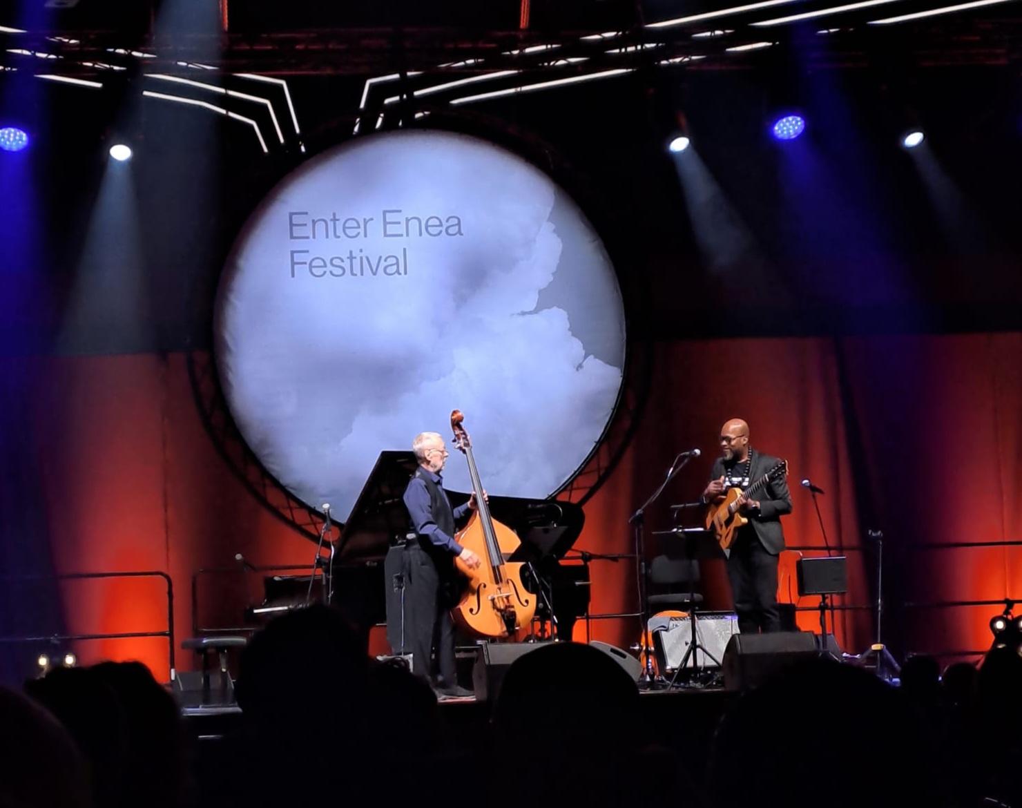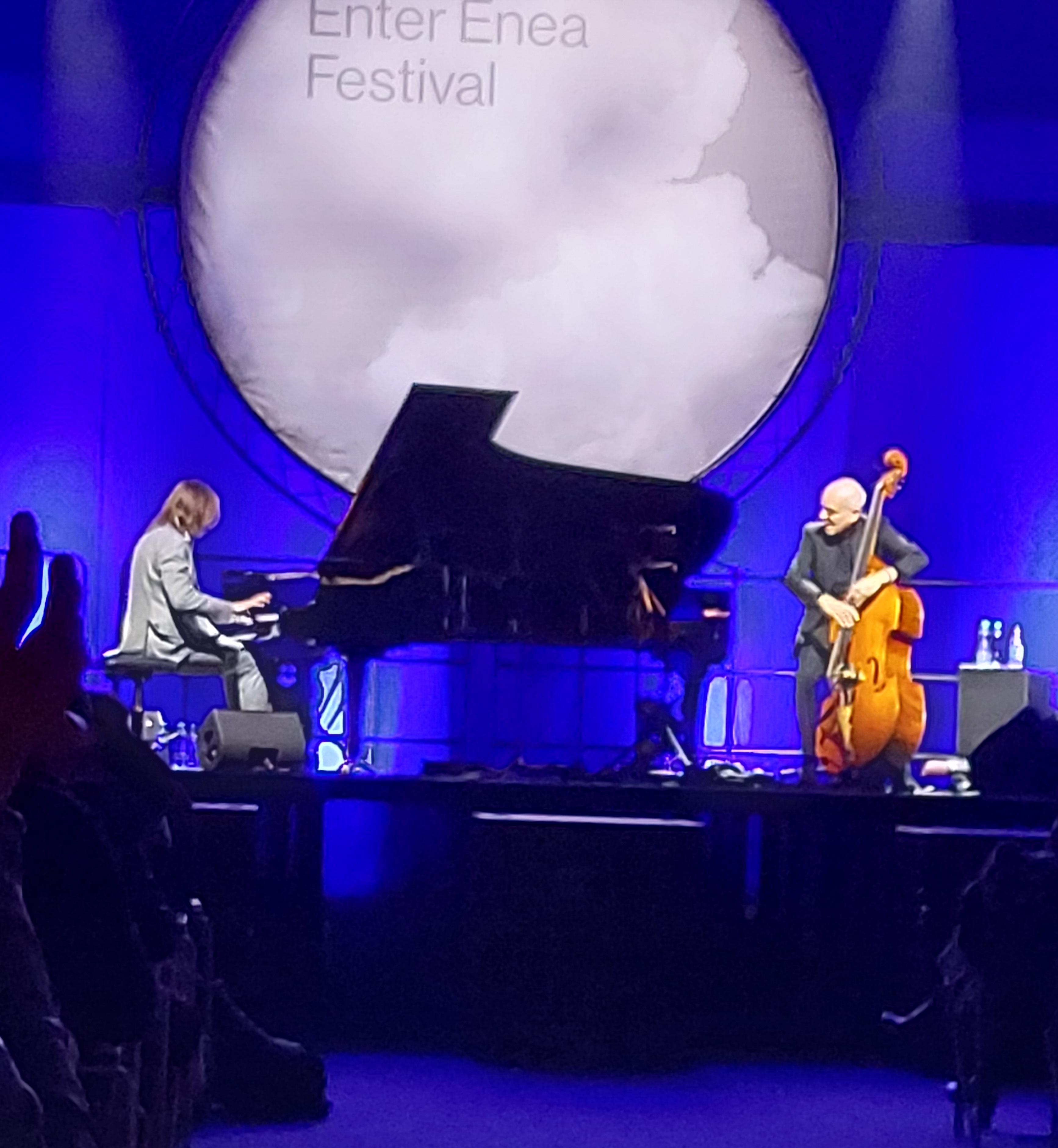 DAVE HOLLAND - LIONEL LOUEKE LESZEK MOŻDŻER - LARS DANIELSSON Poznań Sala Ziemi. Jak powinien brzmieć kontrabas....? Dwa duety zaprezentowaly się wczoraj w ramach pierwszego koncertu Enter Enea Festival '26. Na afiszu nazwiska, które fanów gatunku wbijają w fotel. Choć myślę, że większość publiczności, ktora szczelnie wypełniła Salę Ziemi przyciągnięta została zapewne nazwiskiem Możdżera, to wiadomo, że gwiazdą absolutną był sam Dave Holland. Były to dwa nie związane ze sobą recitale i choć zdawać się mogło, że niskie tony zdominują przestrzeń, a gitara i fortepian to tylko drugoplanowe dodatki, ostateczny odbior i ocena obu występów była tyleż pozytywna, co jednak odmienna w istotnych kwestiach. Wspólna przestrzeń i nastrojowy minimalizm. Duet Holland-Loueke okazał się wbrew przypuszczeniom, doświadczeniu muzyków i nośności ich nazwisk bardzo partnerski, grali dwaj muzycy doskonale czujący wspólną przestrzeń muzyczną. Polegało to na tym, że to jeden, to drugi instrument płynnie wychodził na pierwszy plan, bez popisów i z zachowaniem pewnej dźwiękowej wstrzemięźliwości. Słuchanie tego bylo jak zdrowe odżywianie w myśl zasady "wstań od stołu z lekkim poczuciem niedosytu". Chciało się nawet wiecej ale muzycy nakarmili nas na tyle, ile sami uznali, że będzie odpowiednio. I było! Przyznam, że nie jestem fanem afrykańskiego folkloru. Tu było to nie tylko jadalne ale po prostu doskonale przyrządzone i wspaniale podane. Loueke gra bardzo subtelnie ale żywo i z energią godną kultury z ktorej muzyk się wywodzi, jest to pełna improwizacja, z zachowaniem charakterystycznego afro rytmu (Loueke pochodzi z Beninu). Brzmienie gitary to kryształ, miał fantastyczne przetworniki, ciekawe, że grał wyłącznie kostką. Do tego wokalizy z użyciem przetwornika, ktory jego głos zamieniał w cos w rodzaju afrykańskiego, plemiennego chórku! A co robił w tym czasie Holland? Pokazał pełną skalę możliwości instrumentu (o dość osobliwej budowie - foto). Grał tak, jakby zagrał na basie ktoś, kto urodził się w Afryce Zachodniej tysiąc lat temu, gdyby wymyślił wówczas kontrabas....To było nadzwyczajne widzieć i słyszeć jak Holland jednym ruchem ręki zamieniał w ułamku sekundy złożoną melodię w afrykański rytm, jak ten rytm grany leniwie, transowo, nagle zrywał się motywując słuchacza do rytmicznych podrygów. Można powiedzieć, że kontrabas stał się w pełni naturalnym elementem tradycyjnej muzyki Czarnego Lądu, a tej muzyce opartej przecież fundamentalnie na rytmie, w ogóle nie brakowało instrumentów perkusyjnych! Mógłbym tak długo... Moja żona powiedziała, że Holland ładnie zagrał... 😎 A po chwili dodała "naprawdę ładnie" i wiem, że to był wielki komplement kogoś, kto słucha po prostu dla przyjemności i relaksu. Nierozerwalna więź i bogactwo dźwięku. Tandem Możdżer-Danielsson znany od lat choć raczej jako część trio z udziałem Zohara Fresco. Zarówno charakter muzyki, jak wzajemna relacja między muzykami implikowały styl gry na basie i jego brzmienie. Wiemy, że w składach jazzowych układ musi być partnerski, a im mniejszy skład tym partnerstwo większe - inaczej nie da się nic zagrać. I na pewno tu też tak jest - ale nie na scenie.... Nawet ktoś, kto zobaczy ich pierwszy raz, nie będzie miał wątpliwości kto tu jest liderem i jaka jest rola każdego instrumentu. Stylistyka skrajnie odmienna od poprzedniej - współczesny jazz europejski kojarzony z ECM (tu akurat wytwornia ACT, ale stylistycznie to samo). W dodatku to był jazz polski, nazwałbym go chopinowskim, tj dramatycznym, romantycznym, wręcz rozedrganym. Możliwe że poprzedni duet zagrał mniej nut przez cały koncert niż Możdżer w jednym utworze. Był to popis, eksplozja, wirtuozeria, szybkość, eksperymenty dźwiękowe (łańcuch na strunach fortepianu, dający efekt pijanego klawesynu...). A Danielsson jak opisała to moja żona w dwóch słowach "malował tło". O ile Holland grał rytmem i wartościami nutowymi, bardzo to urozmaicając ale z ogromną precyzją, bo musiał trzymać w ryzach też tempo utworu, tak Danielsson grał barwą, tonem, harmonią i to w sposób szalenie rozbudowany. On nie musiał trzymać rytmu, bo fortepian potrafi to robić sam, zatem tutaj bas popłynął szerokim, bogatym dźwiękiem będąc jednak (poza jakimiś elementami solowymi) instrumentem nie drugiego planu, lecz dopelniajacym, właśnie malującym tło. A dla kontrastu i kto wie, może w związku z rocznicą plyty Violator, na bis zagrali Enjoy The Silence, który został mi w głowie do później nocy. Kolejny raz nagłośnienie w Sali Ziemi PERFEKCYJNE!!!! Ten przydługi opis (wybaczcie) ma mi posłużyć do wyrażenia jeszcze jednej refleksji. Po to opisałem charakter repertuaru, układ odniesienia oraz style gry obu basistów, żeby uzmysłowić jak bardzo różnie brzmiały te instrumenty, w tym samym miejscu i czasie. Chodzi o to, że często piszemy o poszukiwaniu basu jaki nam pasuje: konturowy, masywny, szybki (🤨....???), bardzo niski, lejący itp. Tak się nie da. To poszukiwanie czegoś, czego nie ma. Bas w każdym repertuarze, rękach, miejscu i czasie zabrzmi inaczej. Oczywiście jakieś brzmienie możemy lubić bardziej ale próba ujednolicenia, tak by bas był zawsze taki jak lubimy to po prostu nieprawda. No ale to już zależy kto i czego szuka w muzyce. Na koniec przytoczę słowa Leszka Możdżera wypowiedziane podczas koncertu, które chyba uczynię swym muzycznym mottem życiowym: "Muzyka to taka działalność, która pozwala dać upust naszym wszelkim frustracjom, bez obrażania kogokolwiek " Holland/Loueke Możdżer/Danielsson Narzędzie pracy Lionela Loueke. Zwracam uwagę na wyszukany, audiofilski dywan... Nietypowy kontrabas Hollanda - ze zmniejszonym pudłem rezonansowym, za to na bardzo wysokiej nóżce.