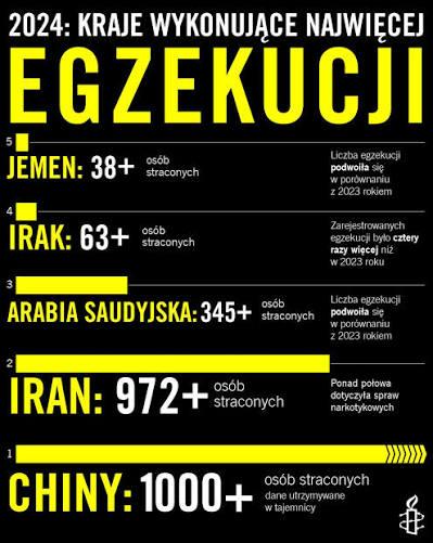 Dane za 2024 rok - Chiny ponownie na pierwszym miejscu pod względem liczby egzekucji !!! Wyprzedziły Iran!!! Po prostu najlepsi we wszystkim !