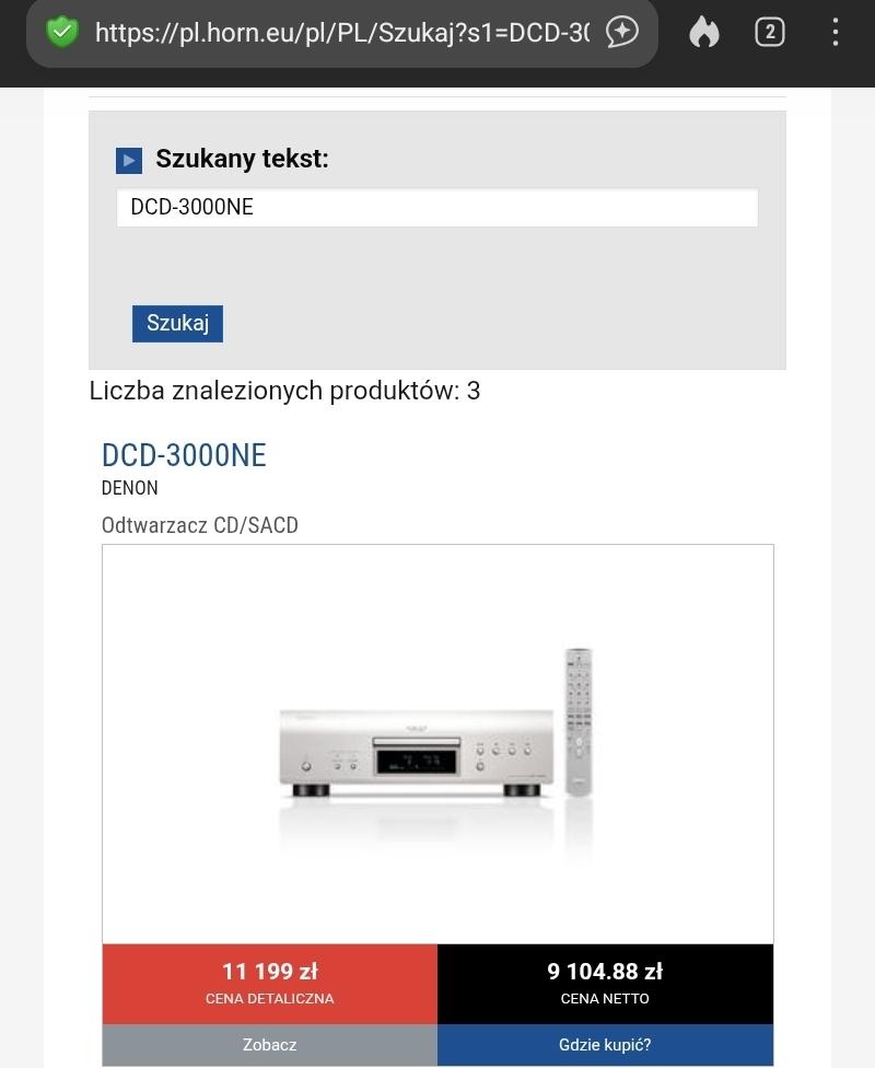 Ktoś tu poruszył temat wianuszka chętnych na kolejne marże z naszej kieszeni, była mowa m.in, o Horn Distribution.... No to przykład. DCD-3000NE kosztuje w salonach audio między 10 a 11k. Ciężko trafić okazję, a raczej wcale. Można kupić w detalu bezpośrednio u dystrybutora, bo Horn ma sklep internetowy. Cena 11199 pln!!! Więc ilość pośredników nie ma znaczenia. Taka jest qurewska polityka branży i koniec!!! Nieważne kto i ilu po drodze zarabia - my zapłacimy na końcu tyle samo.
