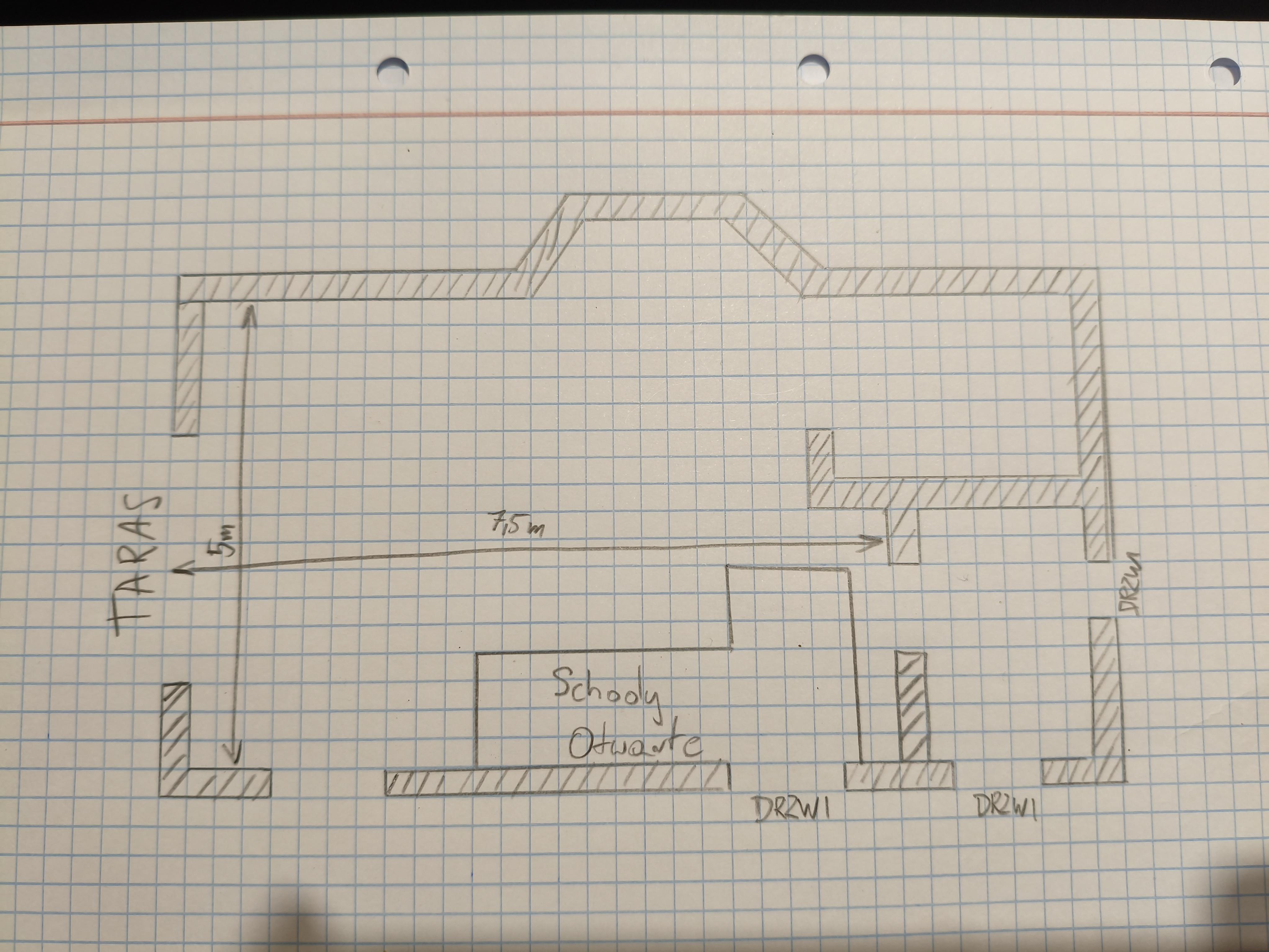 Tam gdzie drzwi jest napisane to są zawsze zamknięte. Reszta to po prostu przejście do kolejnego pomieszczenia bez drzwi.