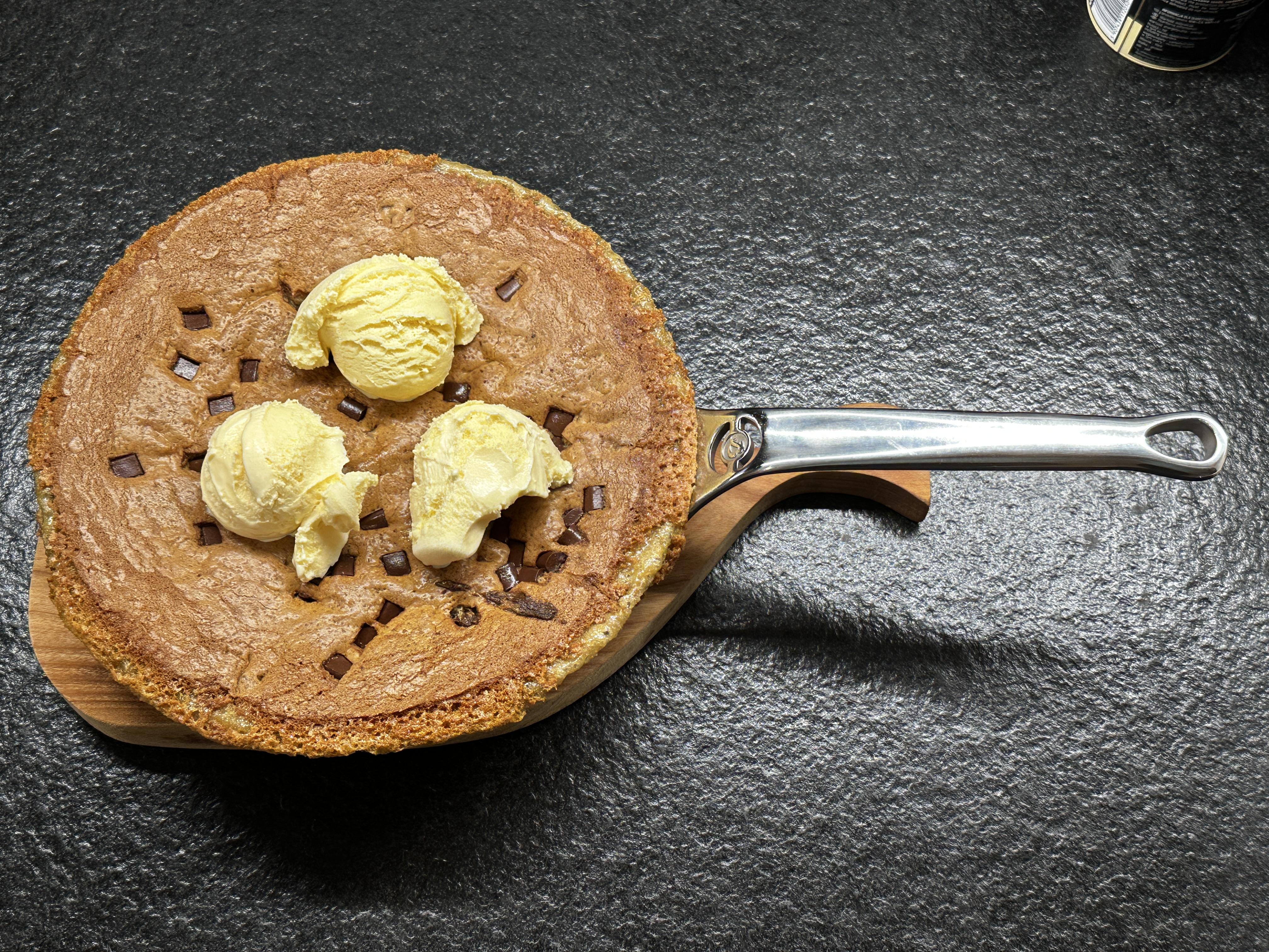 Zrobiłem dzisiaj pierwsze w życiu ciasto z patelni stalowej / na żeliwnej mam karkówkę /. Ciasto z kawałkami czekolady podane z lodami waniliowymi. Wyszło spoko , ale wiem , że to nie dla mnie. Zbliża się lato , wchodzę na redukcję, a to zawiera półtorej szklanki cukru i paczkę masła. Słodkie jak cholera. Spróbowałem , wyszło, ale odpuszczam.