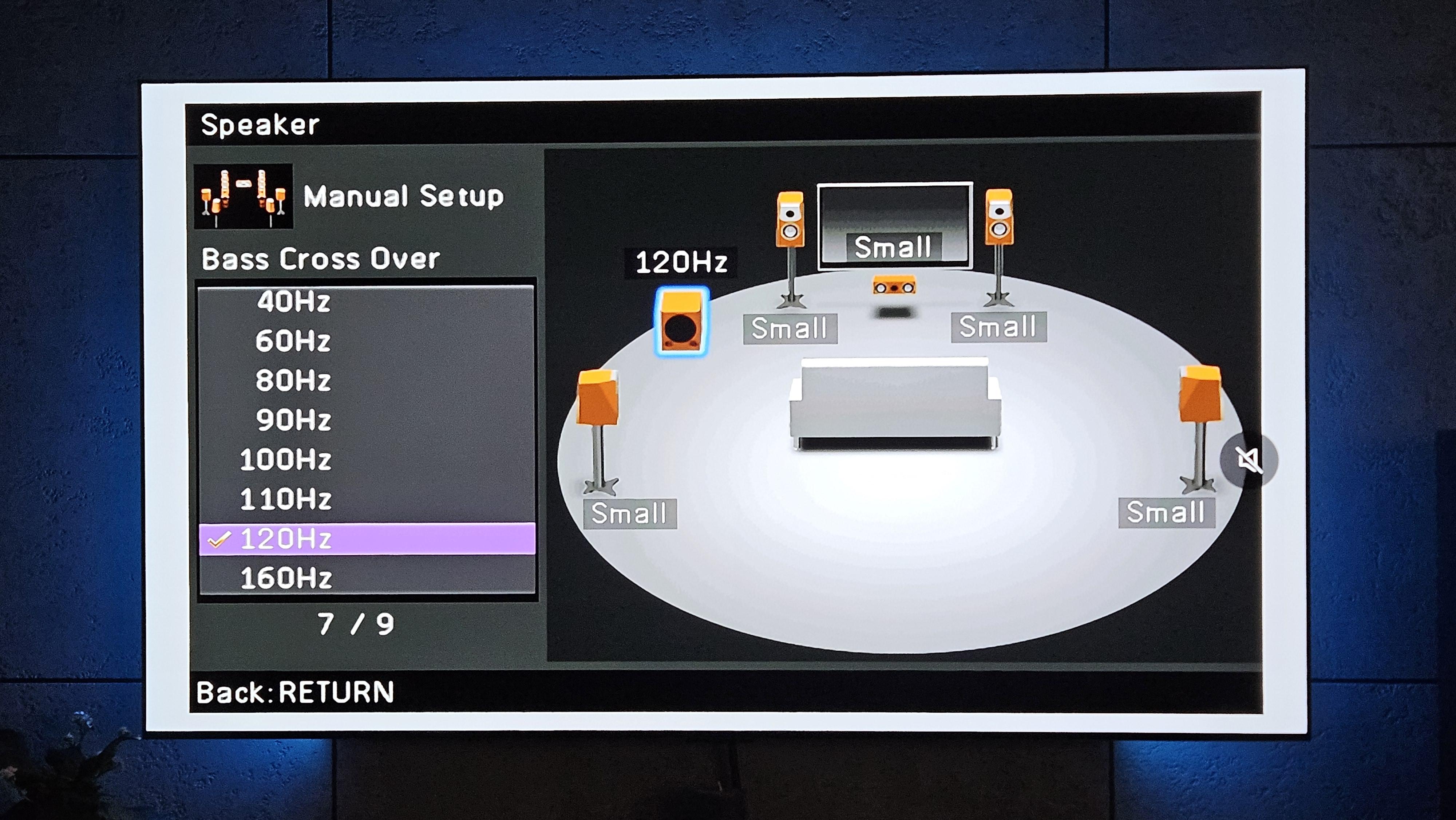 Wszystkie ustawione na small. Nienwiem jak na wszystkich głośnikach ustawić 80Hz. Nie znalazłem takiego ustawienia. Przy subie ustawiłem 120Hz( maksymalnie można 160 lub 200Hz) Dalej sub wyłącza sie po około 4 minutach. Czyli crossover w ampli powinien być na 200Hz? -
