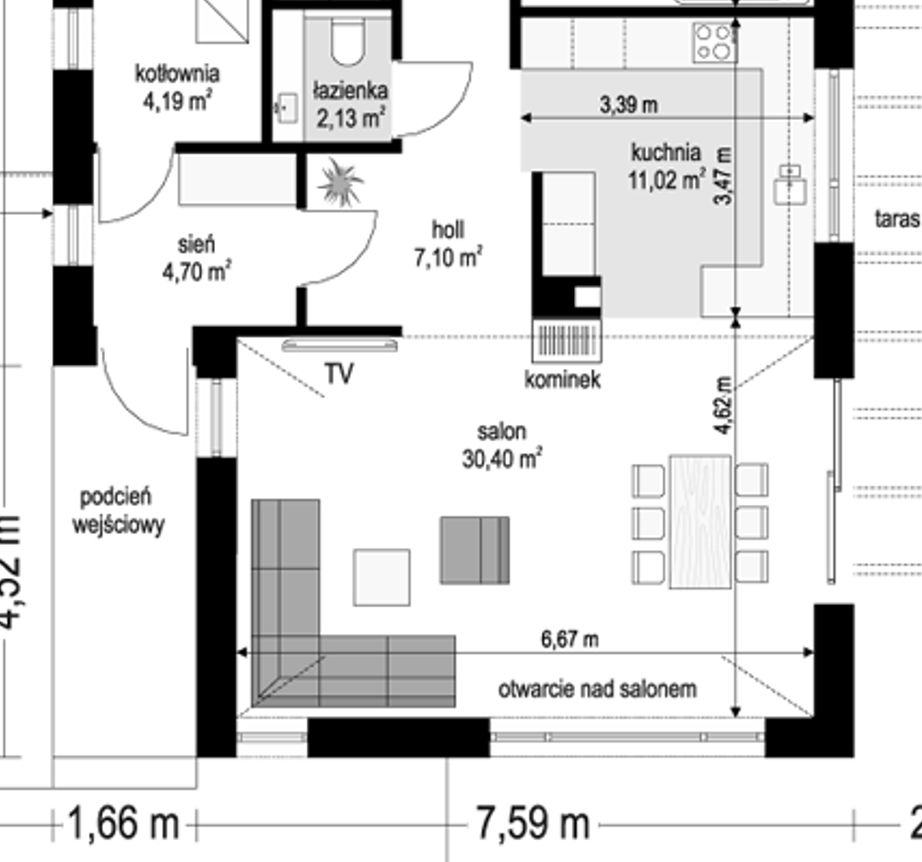 garson zaczął obserwować Kino domowe, salon - wysoki sufit, 30 m2, rozmieszczenie.
