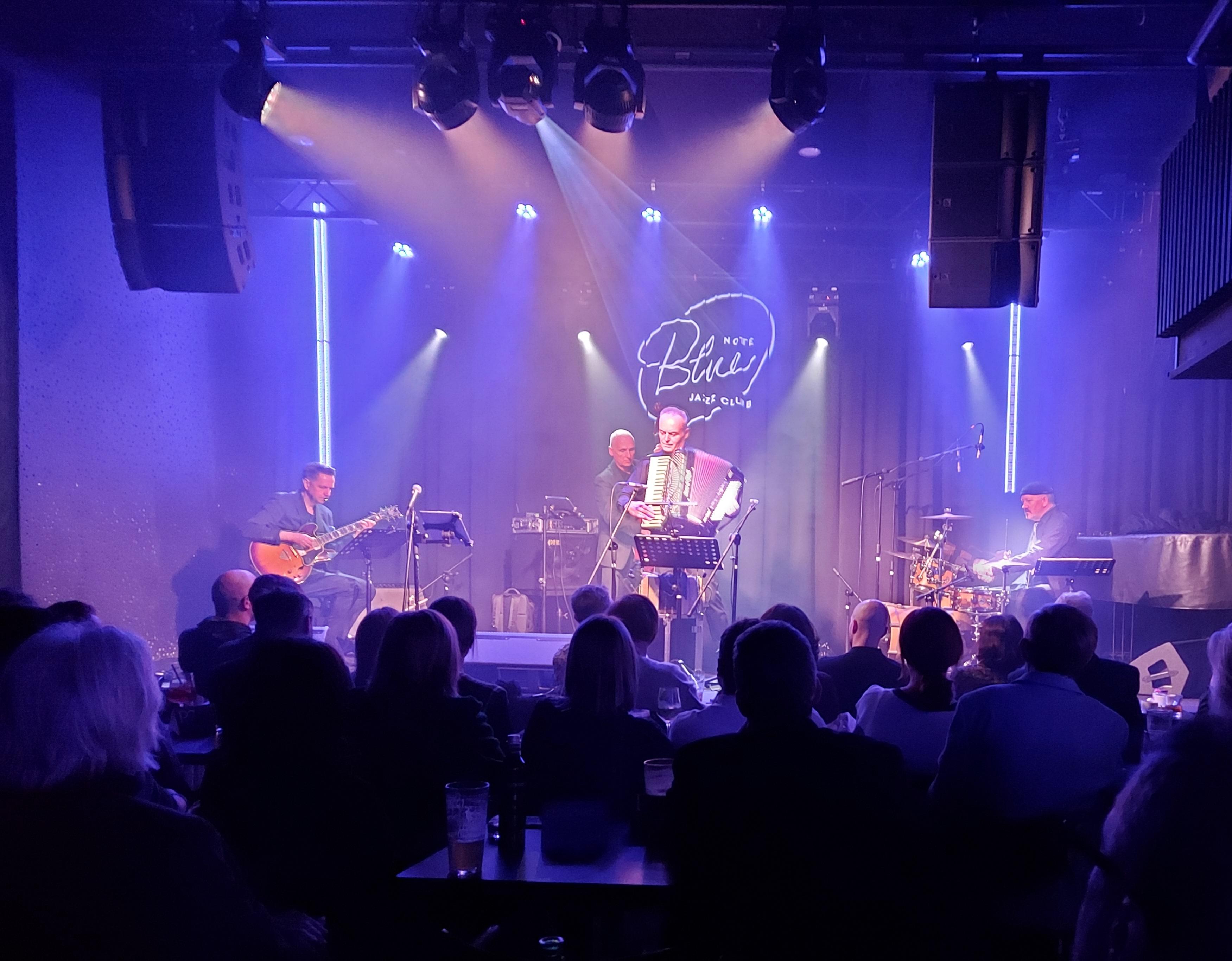Wiesław Prządka New Musette Quartet w Blue Note Jazz Club Poznań. Wystąpili: Wiesław Prządka – akordeon, bandoneon Marek Piątek – gitara Zbigniew Wrombel – kontrabas Andrzej Mazurek – perkusja, instrumenty perkusyjne gość specjalny: Jacek Kotlarski – wokal Trochę przypadkiem, trochę przy okazji, znalazłem się znowu w poznańskim BN. Muzyka nie do końca w moim klimacie ale w sumie było przyjemnie, klubowo, na poziomie, jakość wykonania bez zarzutu. Oprócz kliku standardów (Sinatra, Piaff) oraz muzyki filmowej, oczywiście klasyka akordeonu. Obok kompozycji własnych, w roli głównej przedstawili Richarda Galliano, twórcę gatunku, od którego nazwę zapożyczył zespół - New Musette. Brzmi obco ale po brzmieniu znanych utworów każdy się zorientuje o jaki klimat chodzi. Dodatkowo super przeboje Astora Piazzoli w tym oczywiscie Liber Tango. W dziale "czego sluchamy" padają czasem pytania o muzykę akordeonową. Tu chyba jest jakaś podpowiedź. I z gościnnym udziałem wokalisty