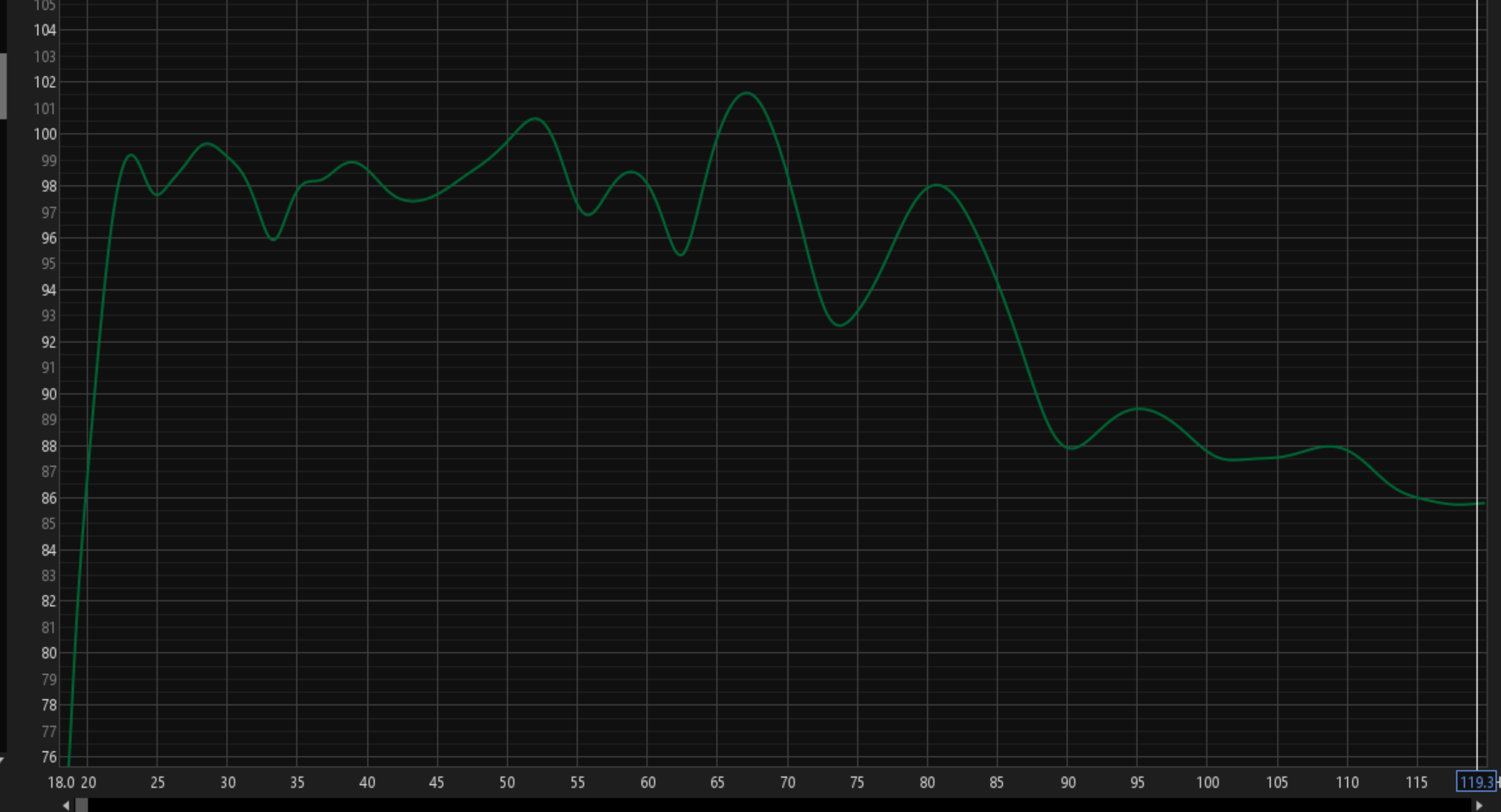 Na początku zaznaczę, że porównanie nie może być traktowane zbyt naukowo z kilku powodów - pomiary wykonywane byly w pewnym odstępie czasowym (brak czasu aby usiasc na kilka h, kręcić gałkam, liczyć i analizować. Sama inicjalizacja projektu w ART na laptopie z Core i7 10 gen dla systemu 5.3.4 to kilkana-kilkanaście minut), pomiary bez ART (z DLBC) były dodatkowo wykonywane w konfiguracji 5.2.4. Głośność systemu też była odrobinę różna - jak znajdę chwilę spróbuję odkręcić gałkę o te kilka dB więcej, żeby sprawdzić jak system sobie radzi. Pomieszczenie to salon z aneksem kuchennym ~31 m^2, 84 m^3 bez żadnej specjalnej adaptacji akustycznej. Zastosowanie - głównie kino domowe. Skupiałem się na niskich tonach. Stąd brak pomiarów powyżej 120 Hz. 1. Ostatnie pomiary z 5.2.4 i korekcją DLBC. Opadanie powyżej 80 Hz nie było dla mnie istotne bo crossover w tej konfiguracji wychodził coś ok 70 Hz. 2. Kalibracja z ART (5.3.4) - tutaj doszedł dodatkowy subwoofer (niezbyt mocny, wszystkie subwoofery to konstrukcje zamknięte). Nie wiadomo więc na ile wygładzenie krzywej to efekt nowych algorytmów czy też dodatkowego źródła - tzn. ja nie podejmuję się określenia tego. No i spektrogram na któym bardzo ładnie widać, że powyżej 50 Hz (ART kompensuje w przedziale 50-150 Hz, suby od 20 Hz) jest mniej pików i są zdecydowanie krótsze.