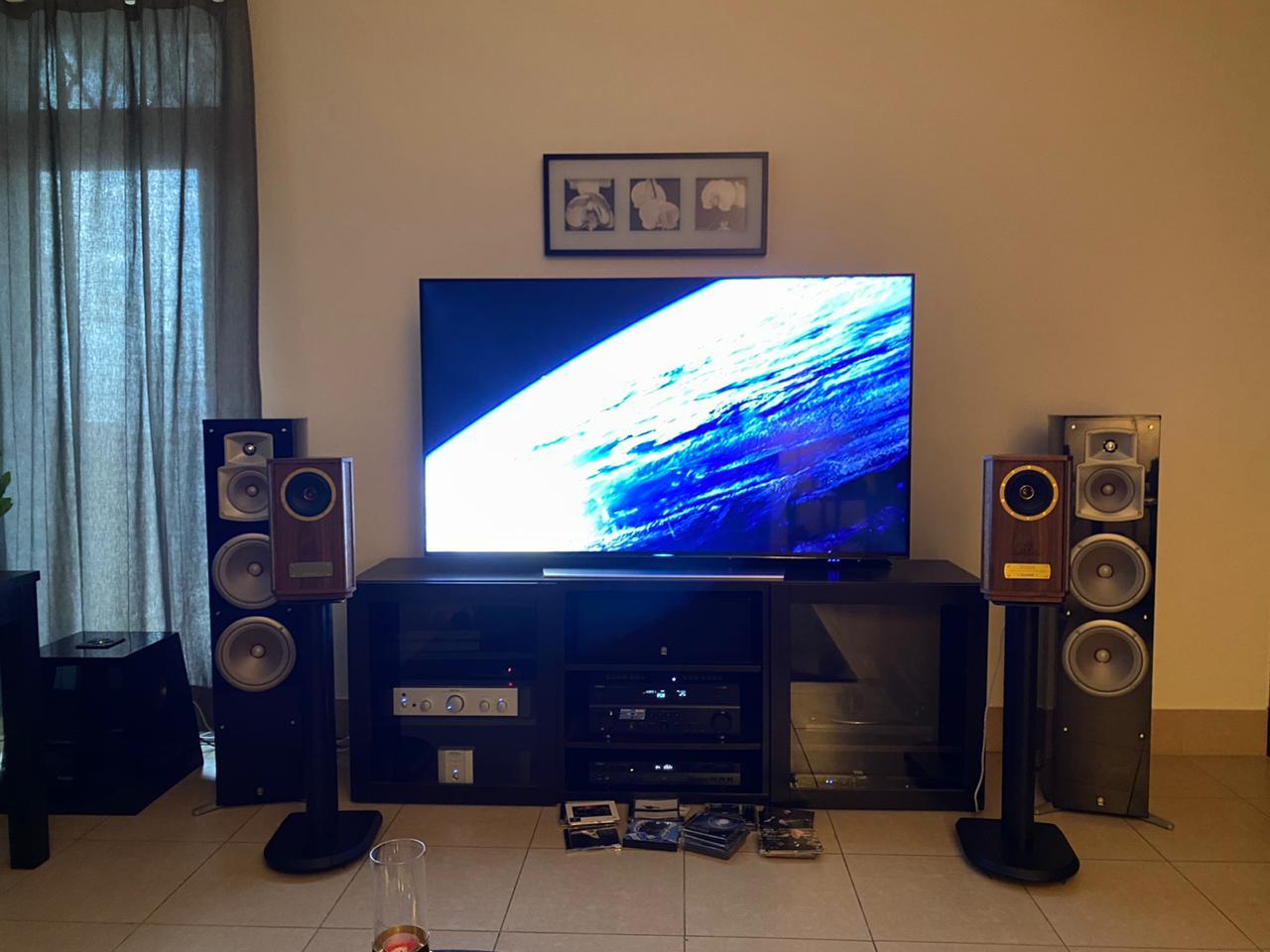 czasami mam za dużo dołu ale to zależy od nagrania i jeśli jest naprawdę głośno ale w większości jest dobrze kontrolowany. Jeszcze mam komorę w suficie na wysuwany ekran do projektora, jest całkiem spora (ze 3 metry długości)i częściowo wygłuszona watą- może troszkę to pomaga. No i ta lewa strona wygłuszona filcem to raczej ścianka. Nie ma tam odbicia od muru. Ale tak jak pisałem wcześniej, usunięcie podwójnej kotary zmieniło dźwięk. Wcześniej był cieplejszy, przyjemniejszy w odbiorze. Teraz jest za jasny. Myślę jeszcze o buforze lampowym- ponoć pomoże zachować mi detal i doda ciepełka do wokalu. ps. przypomniałem sobie bardzo ważną rzecz. Na początku miałem gumy pod nóżkami i było tragicznie, bas się rozłaził, po zmianie na szpilki to są inne kolumny.