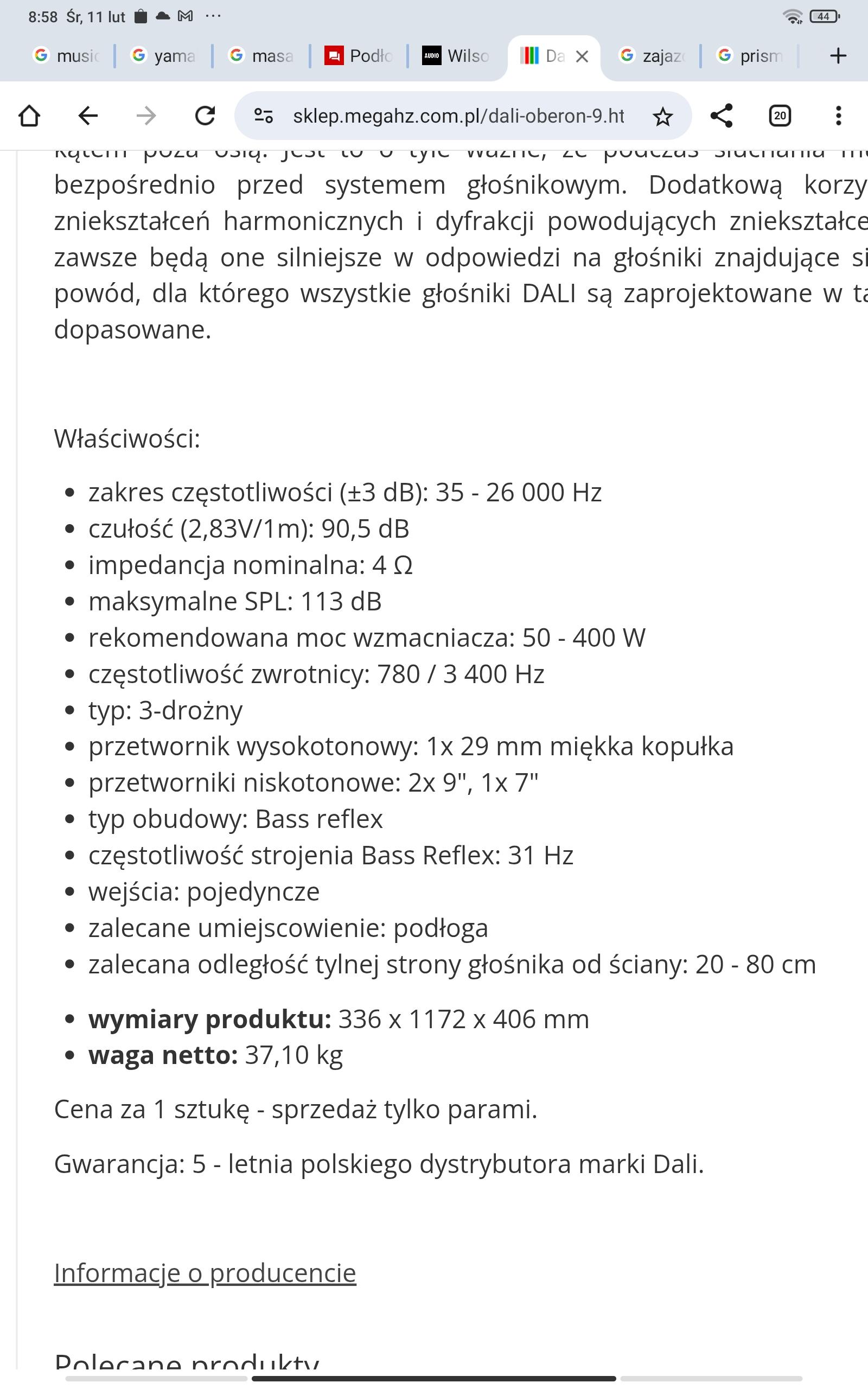 Kawał głosnika. Zalecana moc wzmaka do 400w. No ciekawe jakby im dać te 300-400w,jaki byłby efekt.