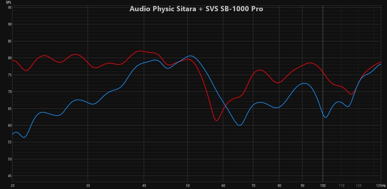 Dotarł do mnie mikrofon Eversolo EM-01, to i REW poszedł w ruch. Korzystając z okazji wrzucam więc swoje pomiary (mikrofon w sufit). Pomieszczenie 11m², kolumny Audio Physic Sitara. Dodatkowo pomiar z subwooferem, którego zestroiłem i ustawiłem już chyba w ostateczny sposób. Crossover 80Hz, slope 24dB, faza 180°, trzy aktywne filtry. Na pozostałe doliny może pomóc już chyba tylko drugi sub. Może kiedyś. Jestem bardzo zadowolony z uzyskanego efektu Zakres 20-135Hz. Wygładzanie 1/12. ■ - same kolumny ■ - kolumny + sub Plik .mdat w załączniku. 261125-2.mdat