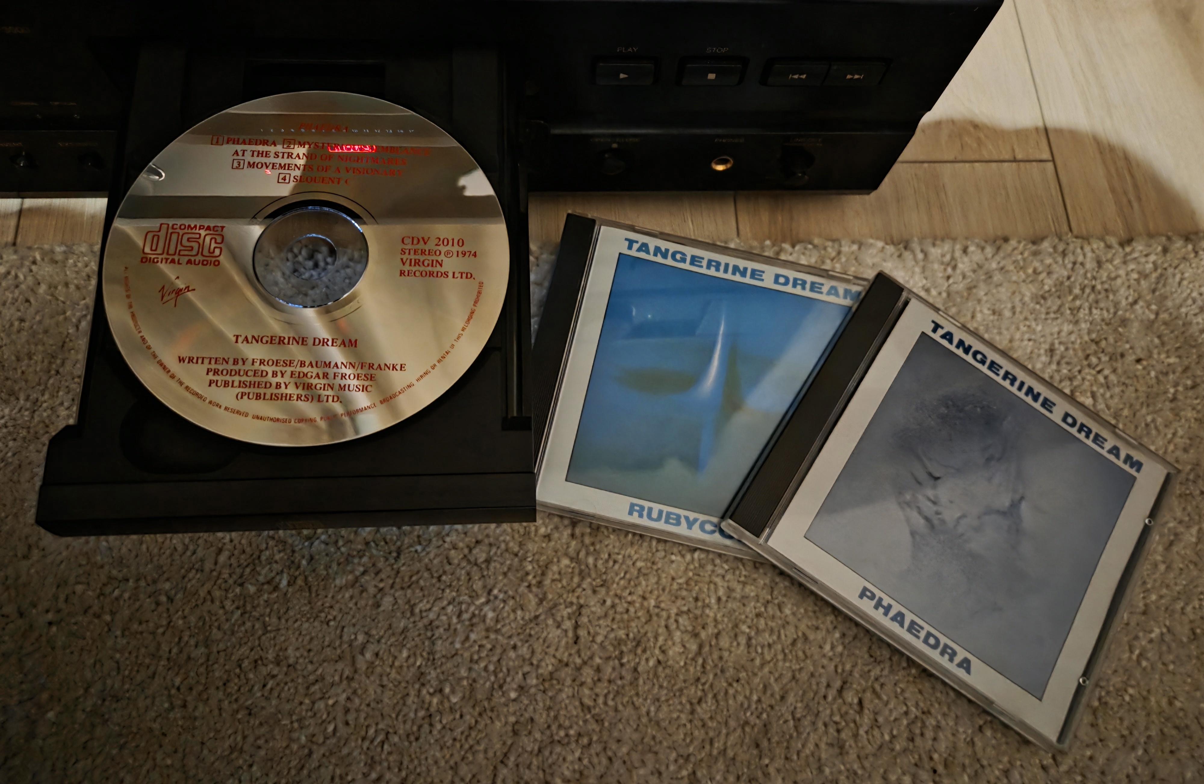 Dzisiaj po raz pierwszy słucham Tangerine Dream, konkretnie Phaedra i Rubycon. Zobaczymy, co z tego wyjdzie. Jak zwykle cieszą mnie pierwsze wydania na CD. 😀