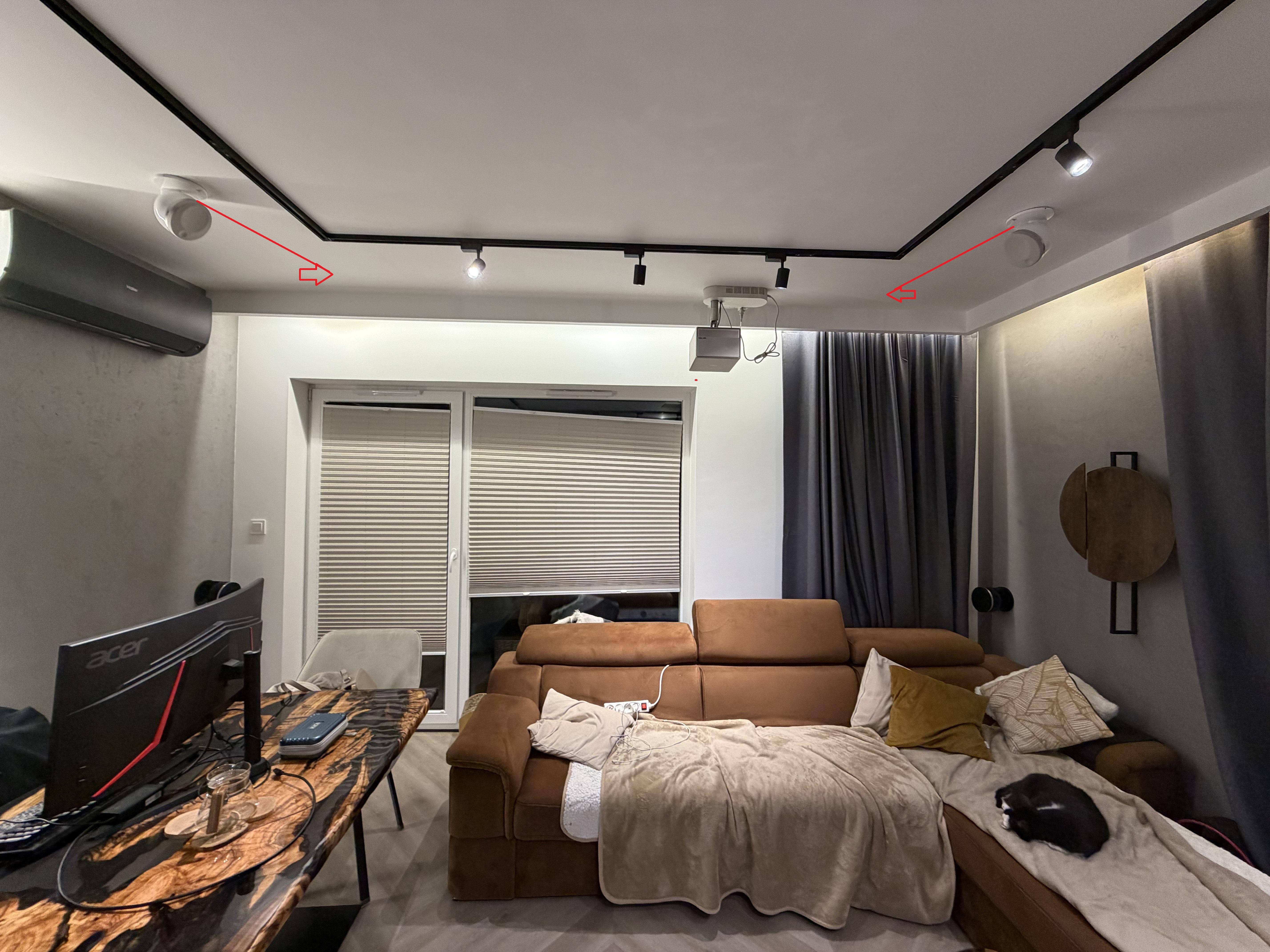 Ok czyli te z TV powinny wylodować na goze z prozdu , a te białe za kanape np. pod karnisz? Oczywiście uwzględniajac kąt, hmm łatwo nie będzie ale w praktyce dało by się to przenieść. Żona mnie zastrzeli.