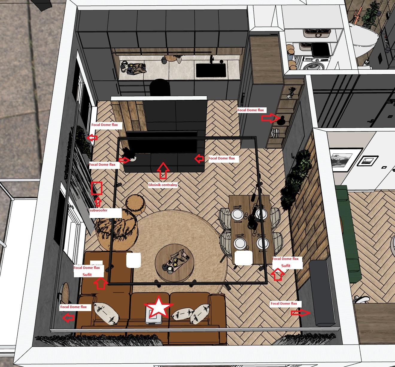 Eh chciałem uniknąć 3800h ze względu na potecjalną wade fabryczną płyty głównej oraz myślałęm, że 4800h bedzie po prostu grać ładniej. Te 2xFocal Aria Evo X N°1 chciałem dać zamiast tych satelitek na szafce TV, ale jak pisze @MASX chyba jest to bez sensu. Kurczę, czyli czeka mnie całkowite "przemeblowanie" eh... jakieś rady? W co powiniem iść w moim przypadku, bo ułożenie salonu mam niestety jakie mam(aktuany(1).jpg), kanapa do ściany itp... Co byście zrobili w moim przypadku? Dodatkowo jakiś upgrade sprzętu?