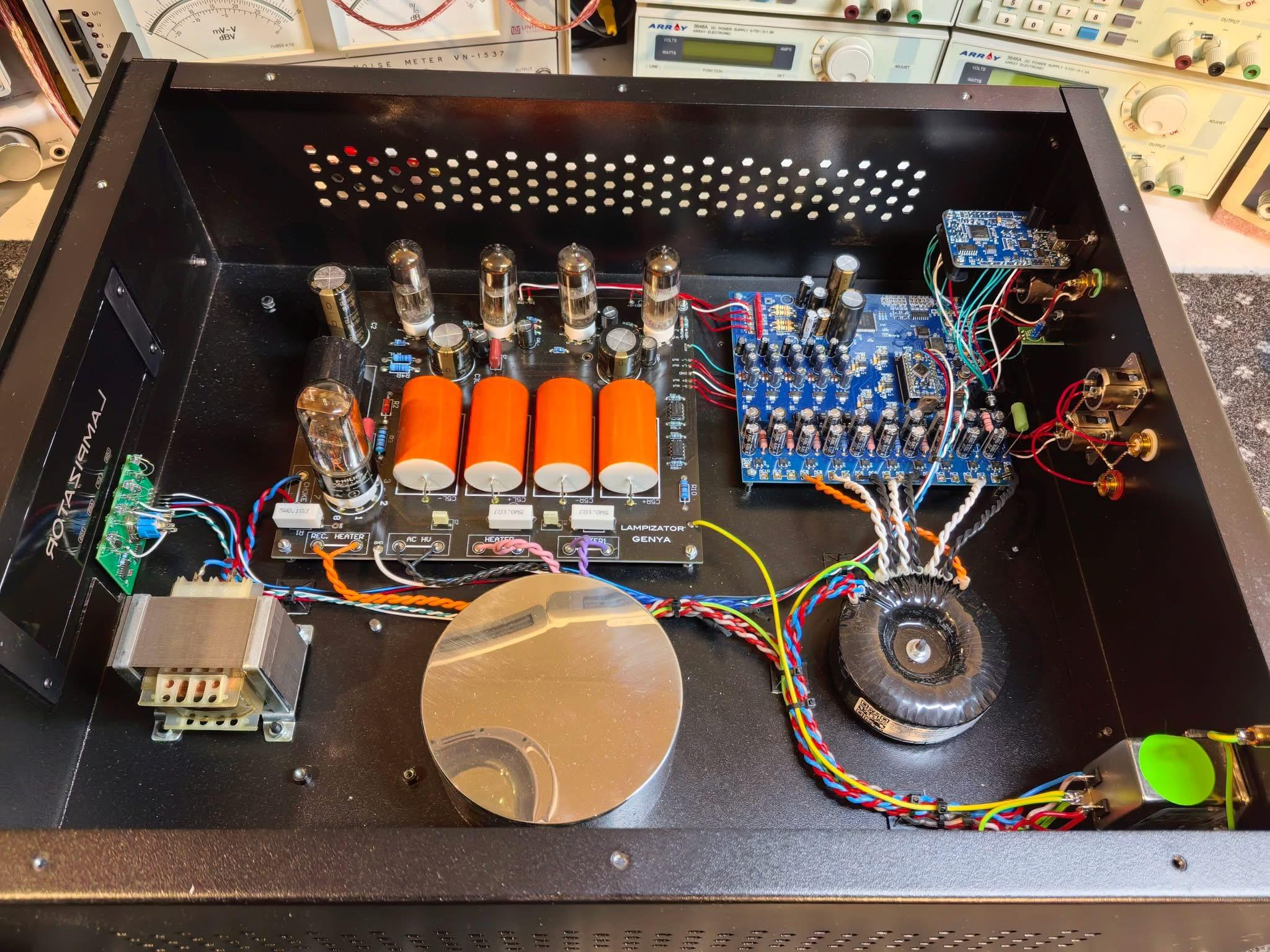 Jak ktoś chce sobie ocieplić/"zniekształcić" lampowo, ale chce mieć DACa typu Mojo czy grać z tego przykładowego Wiima, to zawsze można zastosować bufor lampowy. Na Aliexpress w śmiesznych pieniądzach są takie na pentodach z rodziny 5654/6ż1p/Ef95. Bazowe lampy to jakieś zwykłe chińczyki choć są aukcje na GE Lub np K11 R2R + taki bufor i mamy coś a'la Warmer. Nie wiem jak to gra, ale ludziska chwalą. Przykładowy, pierwszy z brzegu LINK