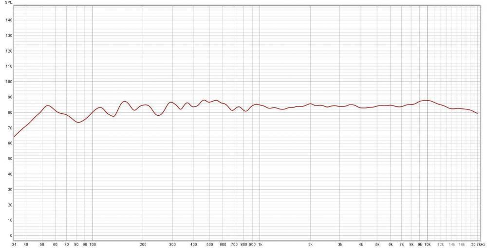 Chodzi mi o to, że mając tak mocno rozciągniętą oś Y ciężko jest coś z tych wykresów wywnioskować. W Twoim przypadku oś pokazuje wartości od 0 do 120 dB. Przy tak dużym zakresie nawet różnice 10-15dB wydają się małe, choć w rzeczywistości są bardzo słyszalne. Na wykresie słupkowym (czerwonym), który wstawiłeś w poprzednim poście wygląda to już dużo lepiej. Poszperaj w opcjach Poniżej dla przykładu wykres z REW, nieodpowiednio przeskalowany. Wydaje się być prawie linijką. No i wrócę do wcześniejszego pytania - w jaki sposób odtwarzasz testowy plik dźwiękowy na kolumnach podczas pomiaru? Jaki to plik?