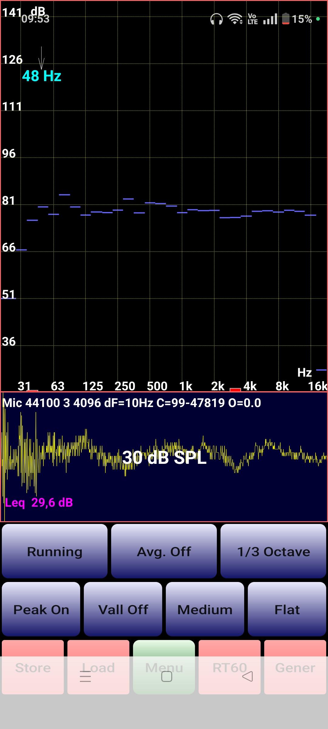 Wstawiałem zdjęcia wykresów, korzystałem z skalibrowanego mikrofonu z jack wpinany do telefonu i obsługiwany przez dedykowaną aplikację. Nie wiem w jakim formacie zapisuje i jak mógłbym "wyciągnąć" ten plik z telefonu.