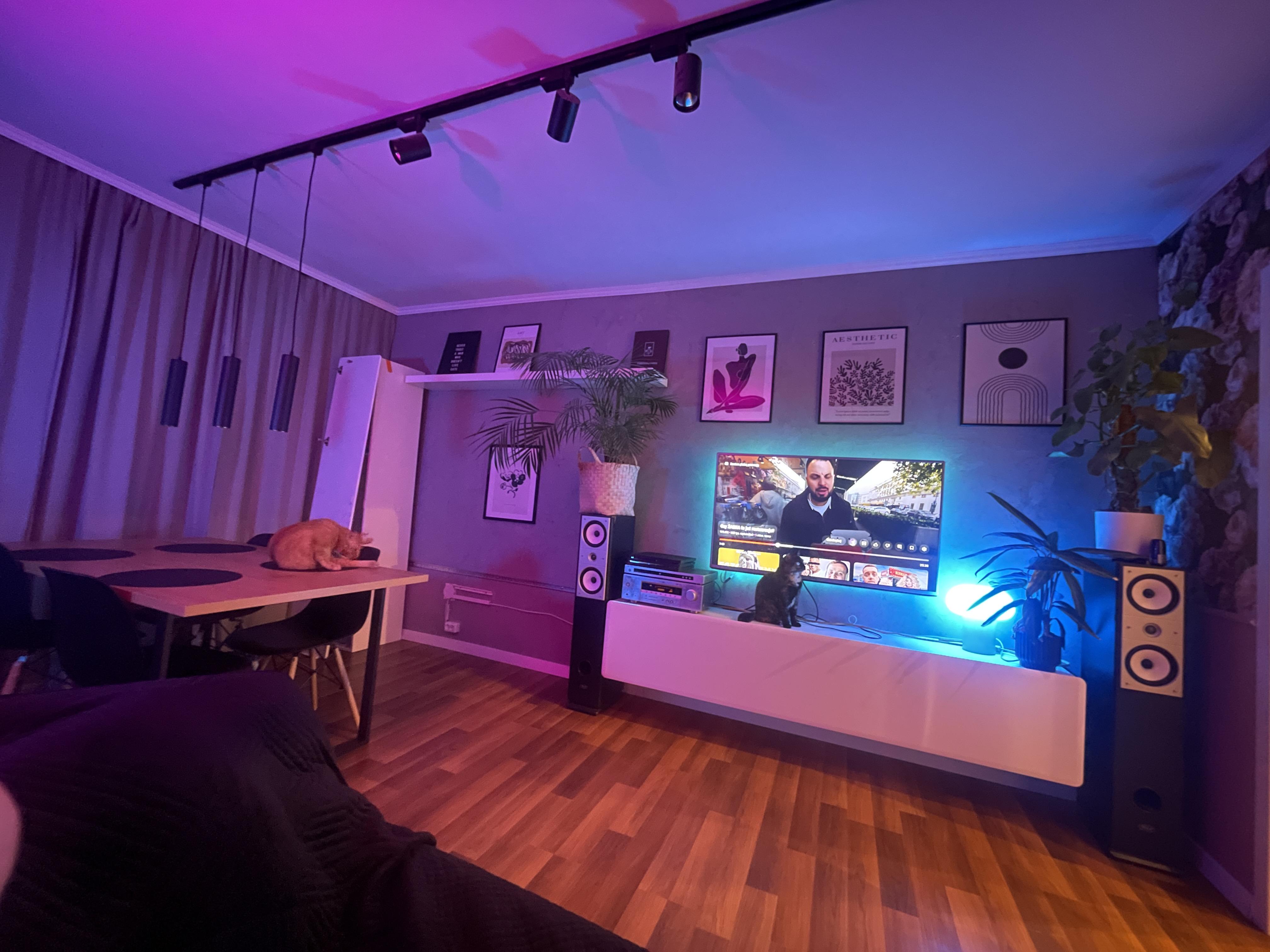 1. Jasne, na tą chwilę wygląda to tak. Ale muszę się pozbyć tych kolumn bo obok ma wisieć taka sama szafka jak ta pod tv i już wcześniej tak było i kolumny były o 4m od siebie oddalone mimo tego, że tv był na przeciwko jednej… jak tylko przestawiłem je tak ja są teraz to już to bardzo dużo zmieniło w jakości. Ale niestety te głośniki mają 15 lat i dodatkowo są uszkodzone.