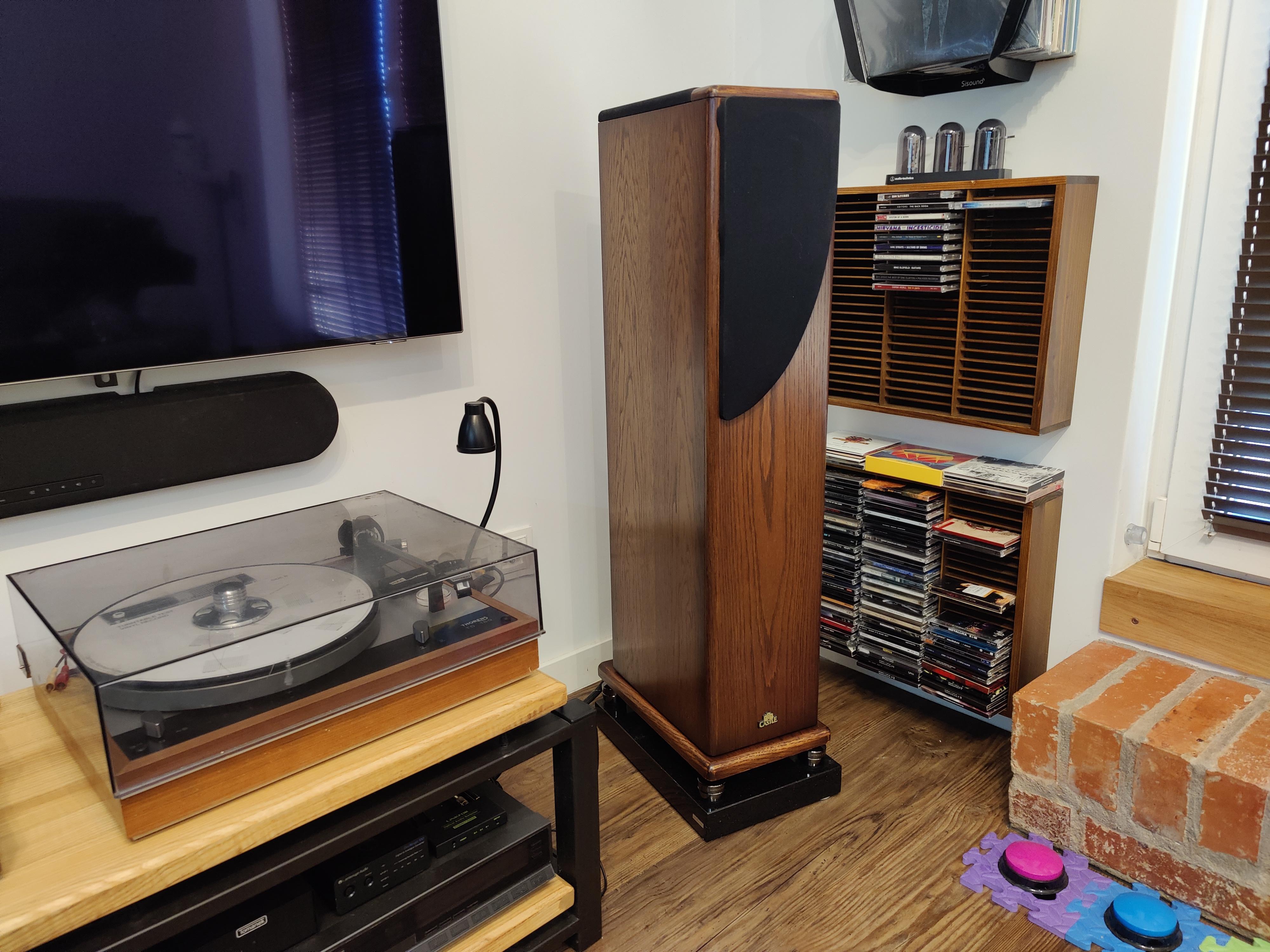 1. Witaj Roro, Drapak zwykły bo Thorens TD-160, sukcesywnie ulepszany. Jakoś w 2018r stwierdziłem że nie samą cyfrą człowiek żyje, bo wzbraniałem się przed winylami bardzo długo, a że nie doskonałe a że za dużo z tym roboty, że drogie to to i dużo miejsca zajmuje. Więcej niż kilka dysków w htpc. Ogólnie kilka lat spędziłem na wyspach, dostęp do sprzętu audio był naprawdę dobry to wszedłem w posiadanie Cyrusa one i chwilę później Cyrusa Two z PSX jako zestaw. One (plastikową starszą wersję) nie miałem okazji wtedy porównać phono do phono. Natomiast kop jaki usłyszałem na PSX.. zdziwiłem się mocno co to pudełko po butach potrafi. No i właśnie jak sobie tak siedziałem na wyspach to szukałem ciekawego sprzętu. Jako że przesiadłem się wtedy z Cambridge Azur odkryłem nową jakość dźwięku. Ogólnie zafascynował mnie dźwięk Cyrusa i jego możliwości. Jedynka trafiła do kumpla. Mogę powiedzieć że bez PSX oba grają bardzo podobnie. Jak już odebrałem wzmacniacz, pamiętam jak trafiłem na ogłoszenie z kolumnami. Jechałem po nie cały dzień i okazało się że były już komuś tak niepotrzebne że trafiły do stodoły. Miałem takie -biore nie biore, zmarnowałem cały dzień w aucie a dość tanio kupiłem, chociaż zawiedzaja stęchlizną i kimś kto koło nich siedział 😁 Trudno, zapakowałem do auta. To był drugi ciekawy traf, chociaż nie były idealne. Tak wszedłem w posiadanie Castle Harlech S1. Mam je do dziś choć potem wymagały napraw a ostatecznie lekko je zmodyfikowałem. Scena jaką grają jest niesamowita. W 2018 wróciłem do kraju i chwilę później sprowadziłem sobie z ... UK ten właśnie drapak. Wciągnęło mnie, chociaż dziś mam rozterkę czy dłubać dalej td160 czy zmienić bazę. Ogólnie uwielbiam Thorensy od początku i na pierwszy gramofon chciałem TD150 ale nie ma mogłem kupić nic zdrowego. Od początku wiedziałem że będę chciał coś zmieniać a to chasis a to ramię itp. Więc celowałem w taki żeby był do nauki i żeby nie było szkoda zmieniać paździerz. No ale do brzegu, ramię tp16 wkładka MM Shure v15 MK III igła SAS Jico (na zdjęciu zwykła z Wamatu) i druga MC Yamaha MC-1000 po retipie. Planuję montaż SME S2 improved, planuje nowe drewno. Obecnie po full serwisie, wymianie oleju w ramieniu i zmianie okablowania. Zmiana baseplate na sklejkę 14mm. Wracając do Cyrusa, u Grzegorza wzmacniacz był kilkakrotnie, jak wszystkie moje graty w sumie. Teraz też jest ale to inna historia. Na początku skrzypiące potencjometry, potem recap a potem tuning na grubo jak uświadomiłem sobie że nie tak łatwo będzie jakościowo przeskoczyć ten wzmacniacz innym sprzętem. Także pierwszy przegląd jakoś 2019r Aha w międzyczasie popsuły się kolumny, myślałem że zwrotnice a to zaczęły pękać celulozowe membrany sredniotowcow. Typowa usterka S1. Zostały w nich wymienione szmatki, również u Grzegorza. Przy okazji tej zmiany wyleciały z kolumn tweetery Vifa które zastąpiłem Scanspeak na jedwabej kopułce. Wybór nieprzypadkowy, polecił mit to ktoś kiedyś na jakimś zagranicznym forum jako bliski zamiennik. Znów więcej przestrzeni ale i ogólnie jakoś przypadło mi to do gustu.Z resztą wzmacniacz i kolumny zostaną ze mną jak nie na zawsze to na pewno na długo. Z ciekawostek przyrodniczych zastąpiłem cd Cambridge D500se - serią PCM właśnie najpierw 4000 ale mi zdechł, teraz PCM 7000, ale chciałbym usłyszeć różnice na PCM II wpiętym do PSX i zbieram różne stare śmieci żeby się to udało 😁 także tak, mam zakręt na punkcie Mission Cyrus lekko. Tylko chwilowo mieszkanie małe.. z ustawieniem jest średnio ale da się.