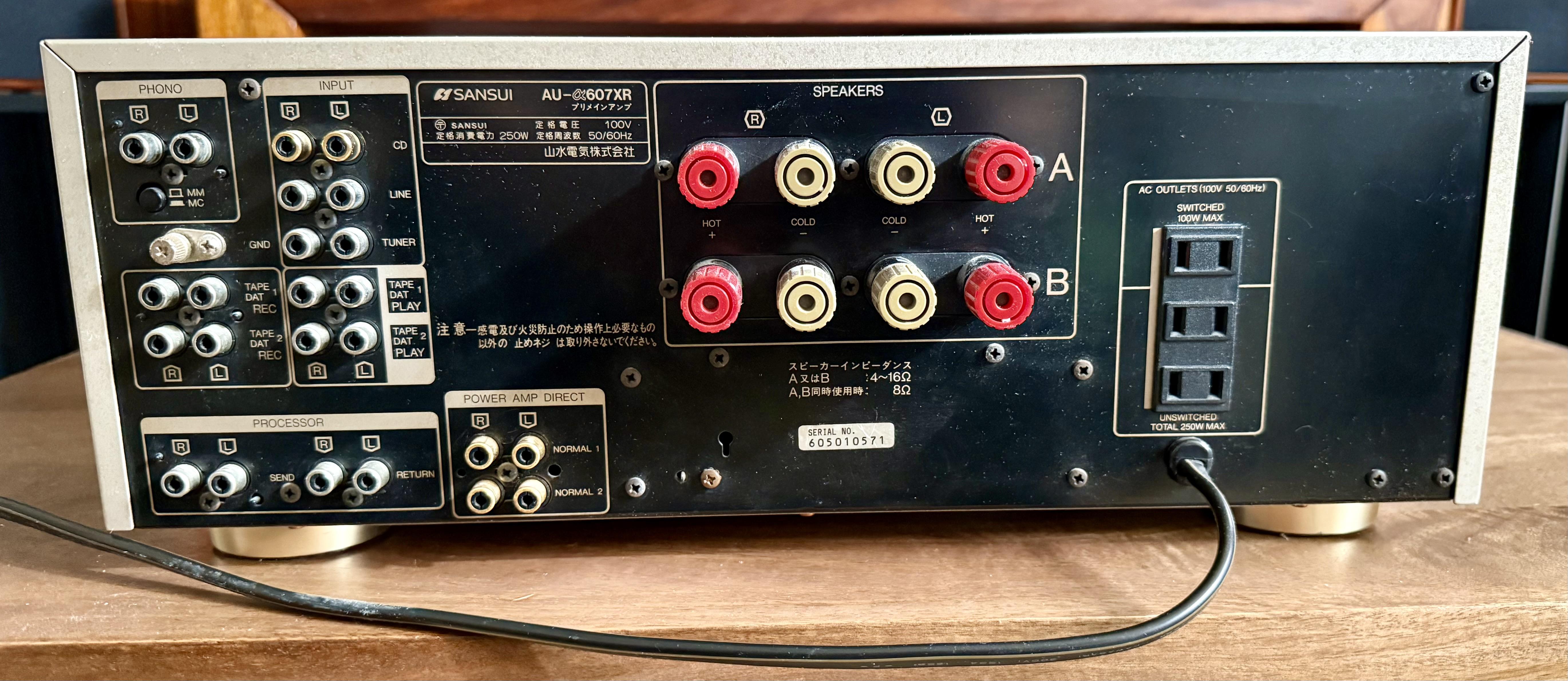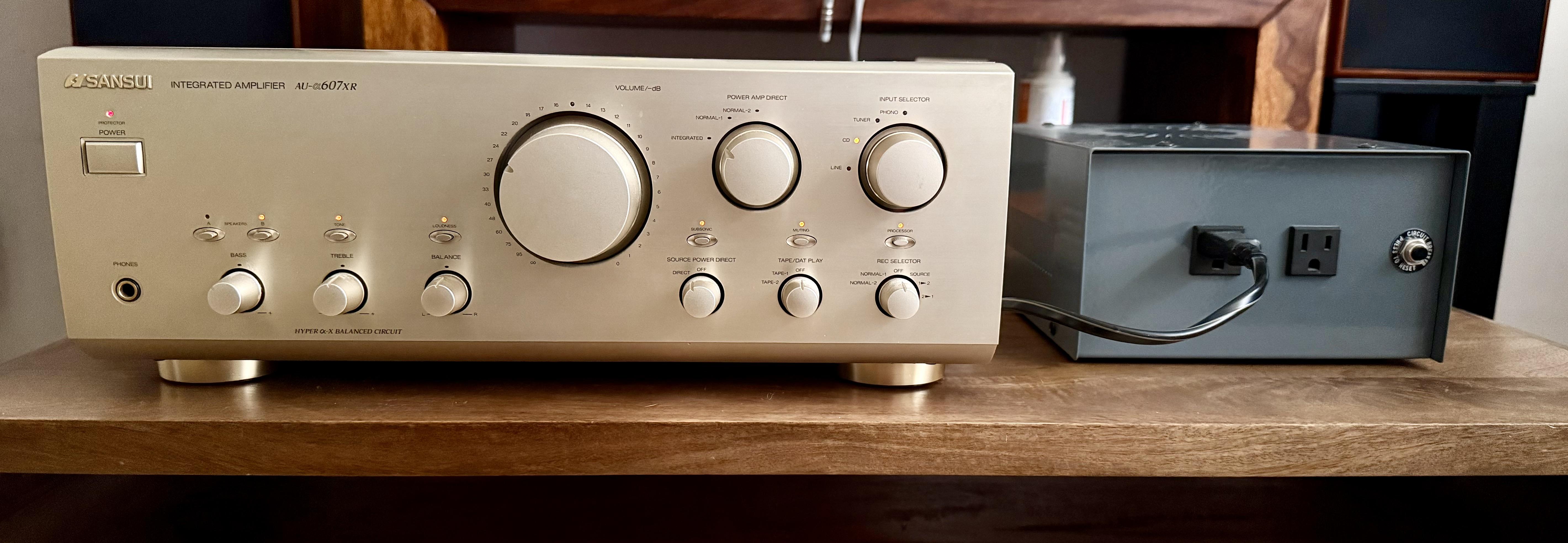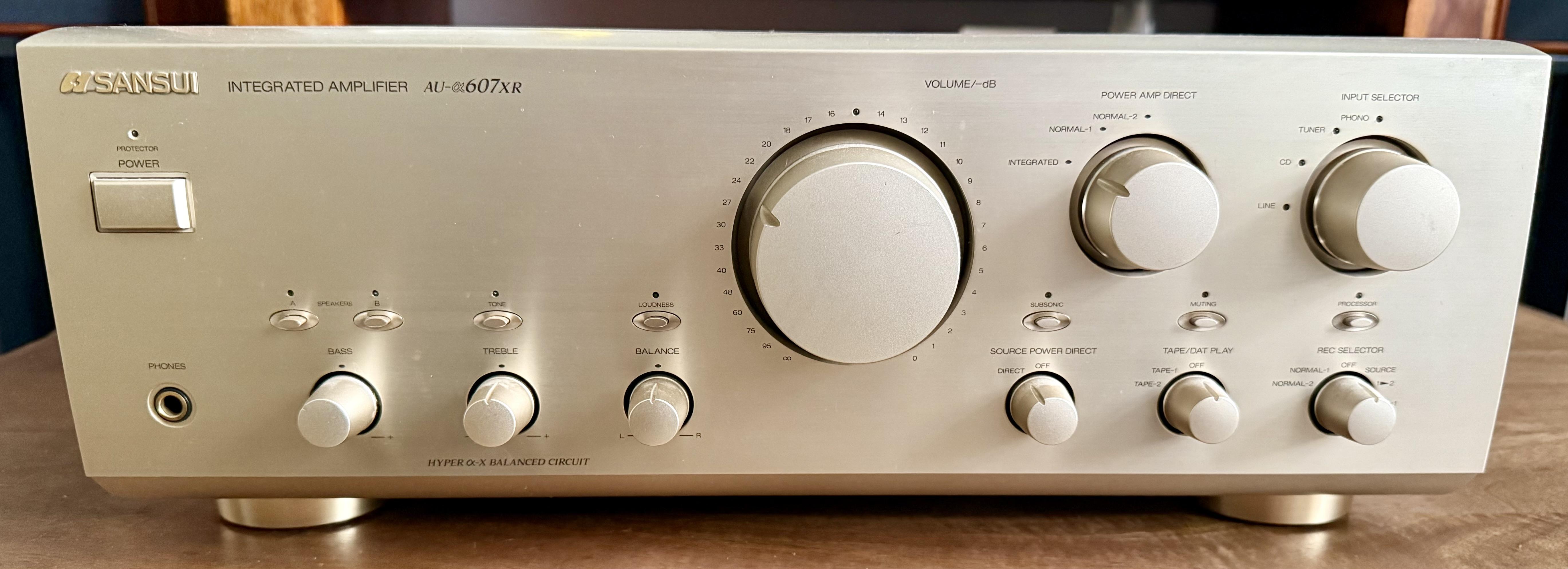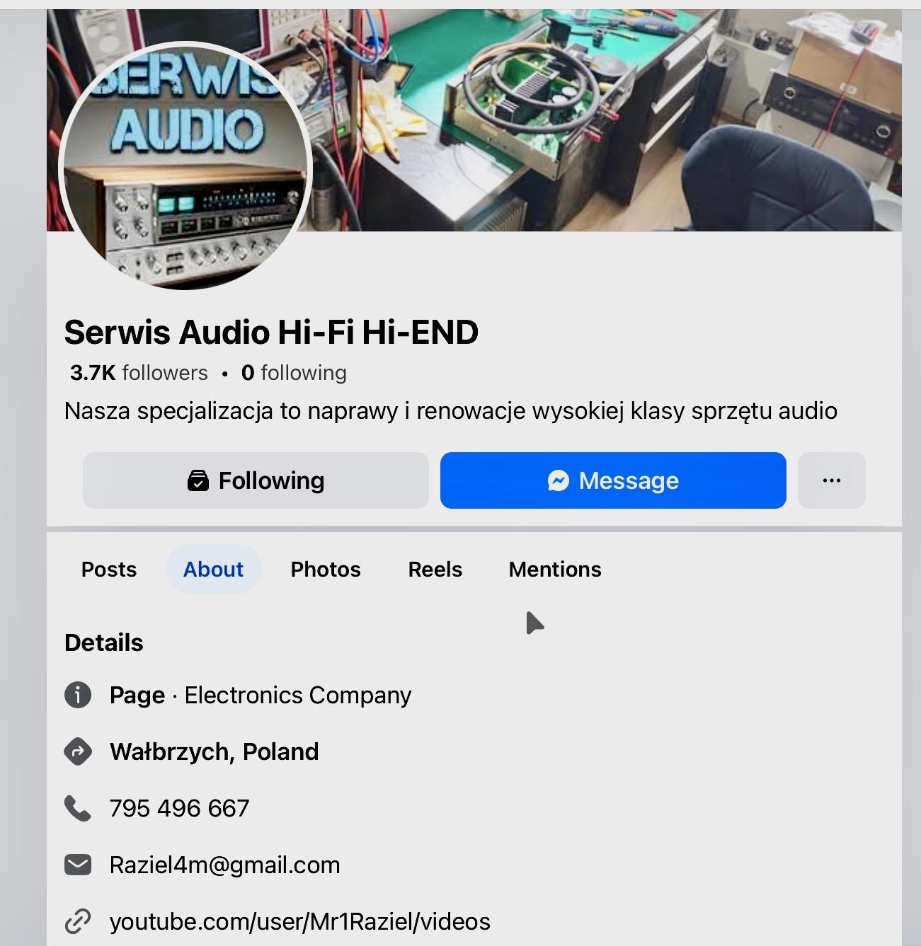 Mariusz Ożga Napisano wczoraj o 12:48 Napisano wczoraj o 12:48 Na sprzedaż Sansui AU-α607XR, klasyczny wzmacniacz z japońskiej „złotej ery” Sansui (ok. 1994 r.), w doskonałym stanie technicznym i bardzo dobrym wizualnym. Model z serii Hyper α-X Balanced Circuit, uważany za jeden z najlepiej brzmiących w swojej klasie. Ściągany bezpośrednio z Japonii, jestem pierwszym użytkownikiem po imporcie. ➡️ Serwis / renowacja: Kompleksowy przegląd wykonany w 2021 r. przez Hi-Fi Surgery / Serwis Audio Hi-Fi Hi-End (Wałbrzych, Raziel) – renomowany warsztat specjalizujący się w Sansui. Zakres prac obejmował: • wymianę kondensatorów w kluczowych sekcjach na komponenty zgodne ze specyfikacją, • wymianę potencjometrów, czyszczenie selektorów, • kontrolę i regulację bias/offset, • czyszczenie wnętrza i kontrolę lutów. Wzmacniacz działa perfekcyjnie – brak szumów, trzasków, pełna symetria kanałów, szybkie załączanie przekaźnika. ➡️ Specyfikacja techniczna: • Moc: 90 W/8 Ω, 105 W/6 Ω • Damping factor: 150 • Pasmo: DC – 300 kHz • Wejścia: Phono MM/MC, CD, Line, Tuner, Tape 1/2, Power Amp Direct, Processor Loop • Waga: ok. 18 kg • Rok: ok. 1994 r. • Made in Japan, oryginalne 100 V ➡️ Dodatkowo: Za dopłatą możliwy zakup profesjonalnego transformatora Airlink Transformers JACBS1000 (1000 VA, Made in UK) – uznany producent, idealny do sprzętu japońskiego (230 V → 100 V). ➡️ Stan wizualny: Front – bez rysek, gałki oryginalne, panel górny czysty, obudowa zachowana świetnie (zgodnie ze zdjęciami). Sprzęt był używany okazjonalnie w domowym systemie z kolumnami Harbeth. ➡️ Odsłuch / odbiór: Warszawa/Piaseczno – możliwy odsłuch na miejscu. Preferowany odbiór osobisty, ale wysyłka kurierem w podwójnym kartonie z pianką również możliwa (po uzgodnieniu kosztów). ➡️ Cena: 4 500 zł (rozsądna negocjacja po odsłuchu). Transformator Airlink + 600 zł (opcja). 📸 Więcej zdjęć na żądanie. Kontakt przez wiadomość prywatna na forum. Odpisz, cytując
