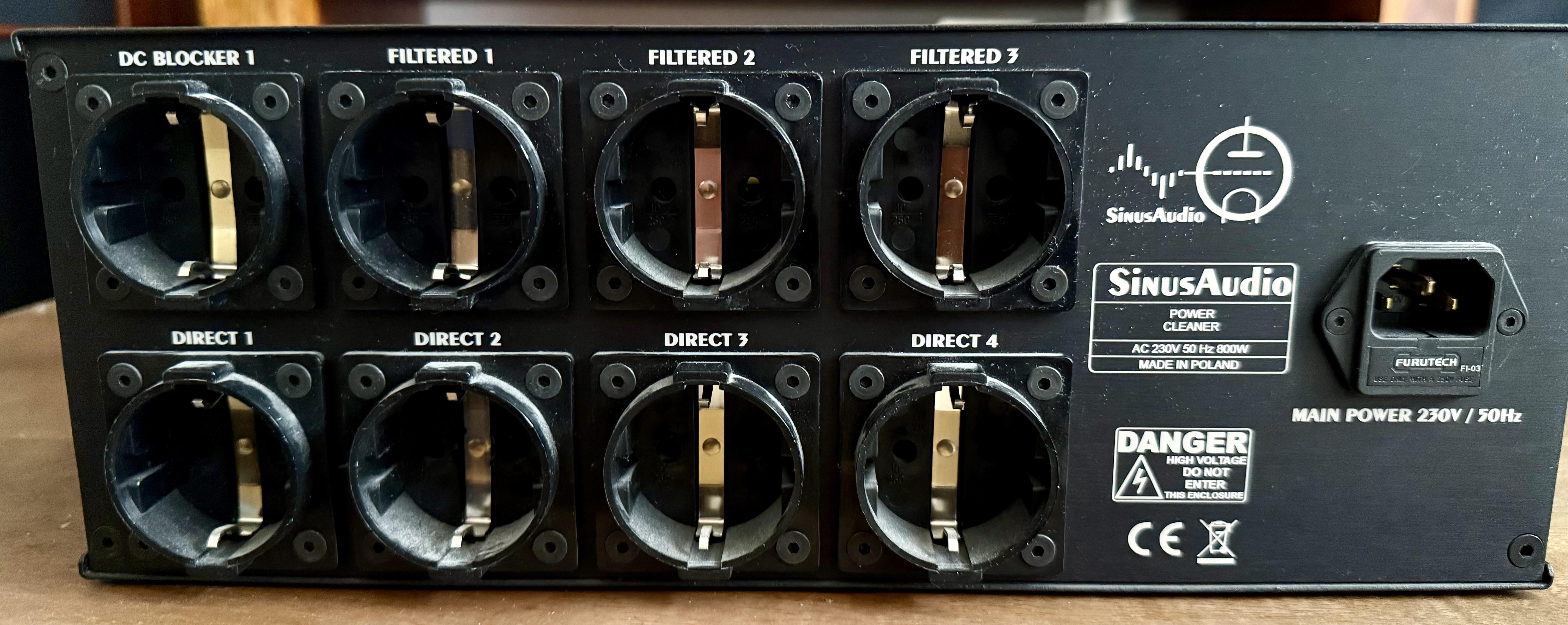 Mariusz Ożga Napisano 1 godzinę temu Napisano 1 godzinę temu Na sprzedaż wysokiej klasy czyściciel prądu (power conditioner) polskiej marki SinusAudio, model PowerSinCleaner / Power Cleaner. Urządzenie w pełni sprawne, w bardzo dobrym stanie technicznym i wizualnym, używane w domowym systemie audio bez żadnych przeciążeń ani uszkodzeń. 🔧 Specyfikacja i funkcje: Zasilanie: AC 230 V / 50 Hz, maks. 800 W Wyjścia: 1x DC Blocker – eliminuje składową stałą z sieci (idealne dla wzmacniaczy z dużymi transformatorami) 3x Filtered – wyjścia filtrowane (dla źródeł, DAC-ów, streamerów) 4x Direct – bezpośrednie, niefiltrowane gniazda o niskiej rezystancji (np. dla końcówek mocy) Przedni panel z indywidualnymi podświetlanymi włącznikami dla każdego gniazda Cyfrowy wyświetlacz LCD pokazujący napięcie, pobór prądu, moc i energię Gniazda zasilające Schuko (PL/DE) o wysokiej jakości wykonania Wejście Furutech FI-03 Wysokiej jakości komponenty wewnętrzne (filtry, kondensatory, okablowanie w miedzi OFC) Solidna aluminiowa obudowa z wentylacją, made in Poland 📦 Stan: Bardzo dobry, wszystko działa jak należy. Wnętrze czyste, nic nie było przerabiane. W zestawie: samo urządzenie (bez kabla zasilającego). 🎵 Zastosowanie: Idealny do systemów audio, gdzie liczy się czyste i stabilne zasilanie: wzmacniacze, DAC-i, streamery, przedwzmacniacze, gramofony, CD, itp. Poprawia kulturę pracy urządzeń, tło staje się cichsze, dźwięk klarowniejszy i bardziej dynamiczny. 💰 Cena: 1 450 zł (do rozsądnej negocjacji) 📍 Odbiór osobisty: Warszawa/Piaseczno / możliwość wysyłki kurierem dobrze zabezpieczonej paczki Kontakt przez wiadomość prywatna na forum. Chętnie odpowiem na pytania lub podeślę dodatkowe zdjęcia. Odpisz, cytując